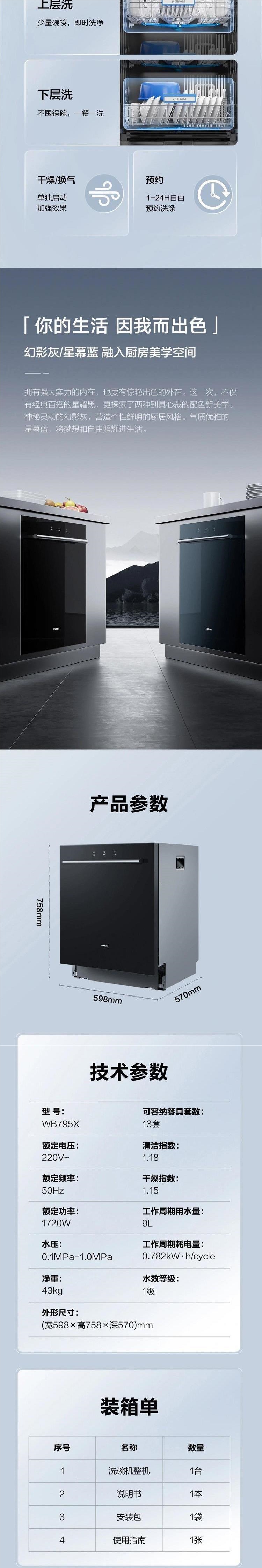 보스 WB795X 가정용 대용량 식기 세척기 13 세트