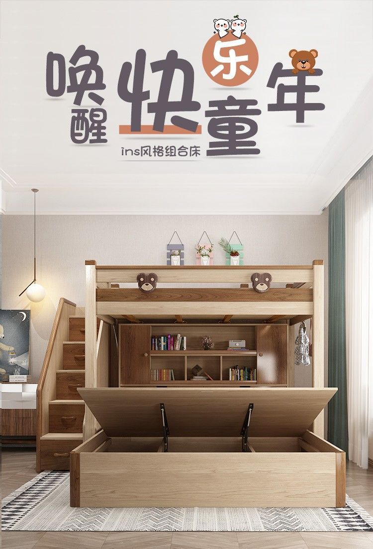 • 床架+梯柜+1.8米303#높은 상자 침대