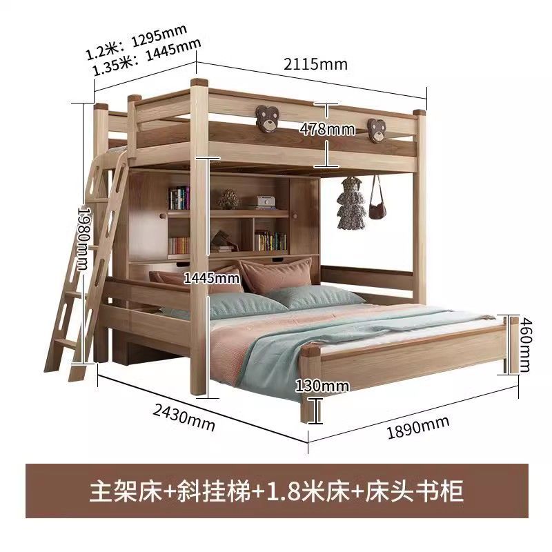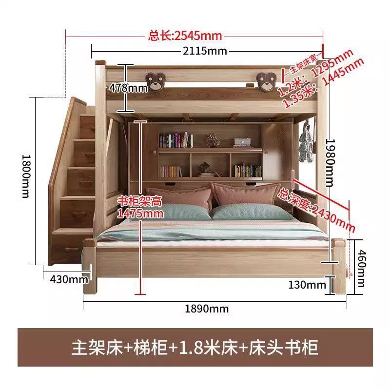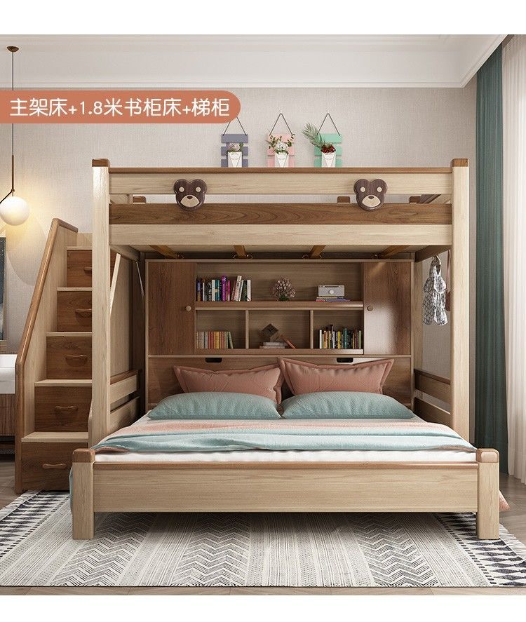 • 침대 프레임 + 사다리 캐비닛 + 1.8m 침대 옆 책장 침대 [메인 사진과 동일한 스타일]
