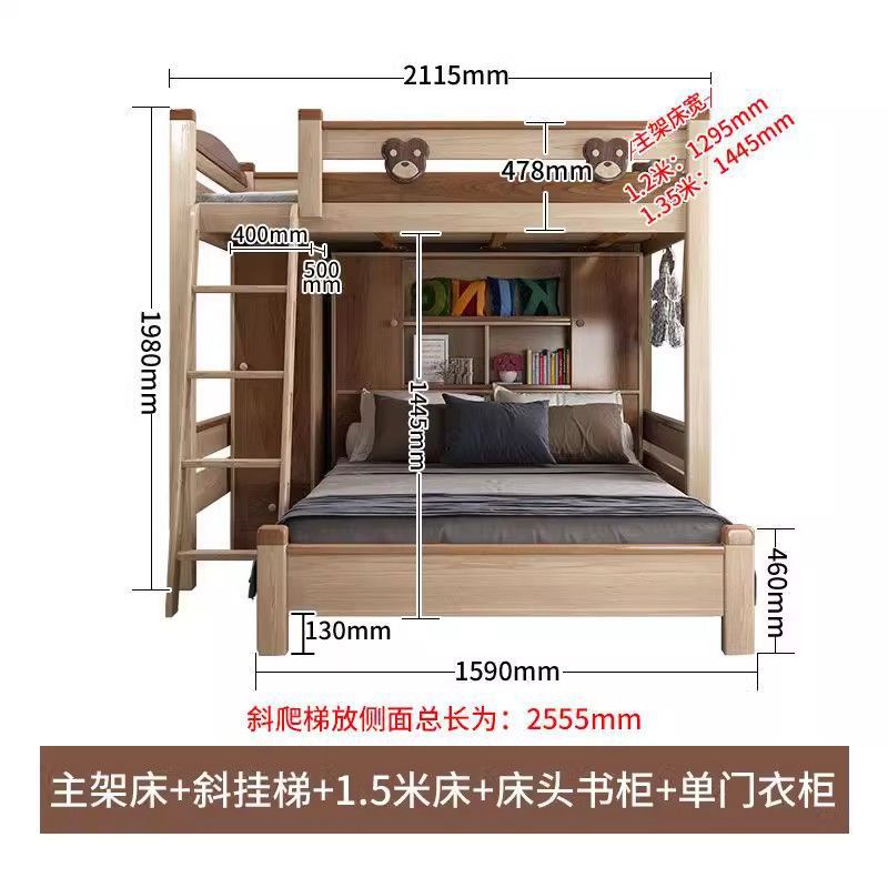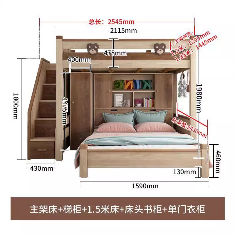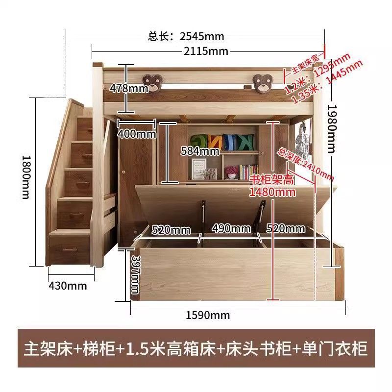 • 침대 전면 사다리 캐비닛 + 옷장 + 1.5m 높은 상자 책장 침대