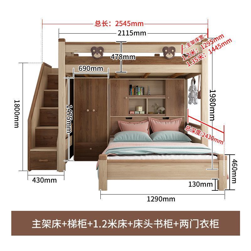 • 침대 + 전면 사다리 캐비닛 + 옷장 + 1.2m 책장 침대