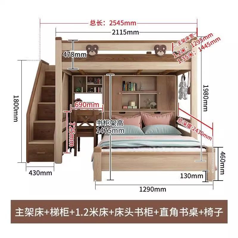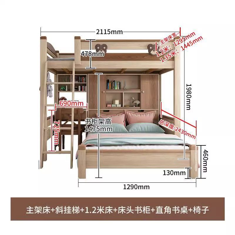 • 침대 + 사다리 캐비닛 + 1.2m 책장 침대 + 직각 책상 및 의자