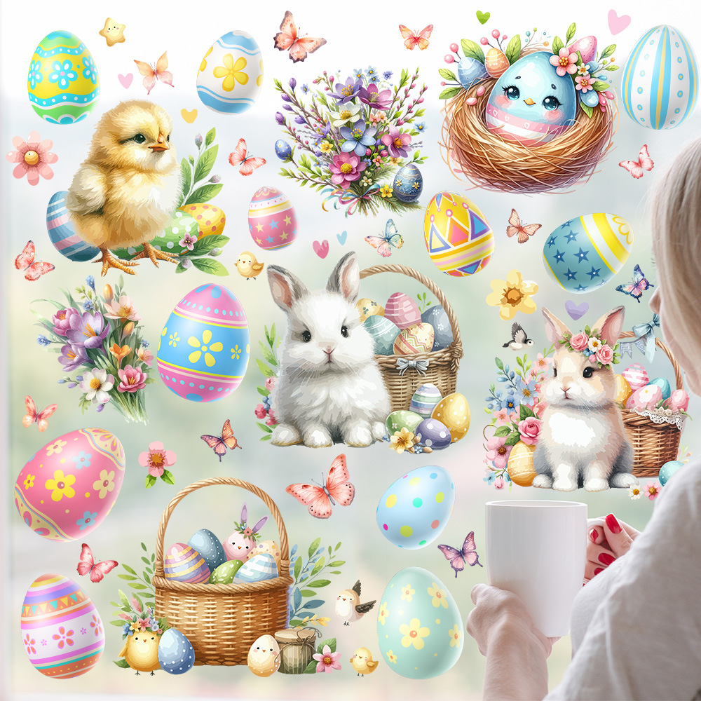 Yiyao JD4610 아마존 스페셜 부활절 나비 토끼 계란 멀티 요소 창 스티커 스토어 장식 스티커