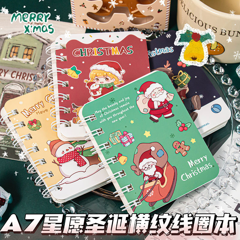A7 크리스마스 코일 북 만화 학생 귀여운 Ins 미니 휴대용 두꺼운 노트북 노트북 워크 북스토어 가기