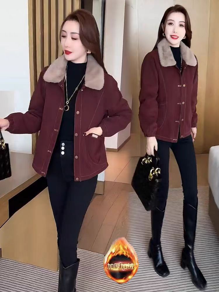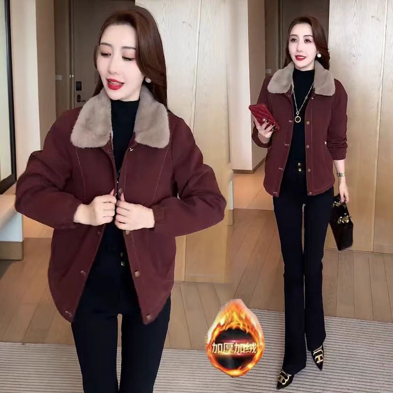 기모 두꺼운 데님 코트 여자 2024 겨울 새로운 유행 느슨한 슬리밍 짧은 재킷 탑
