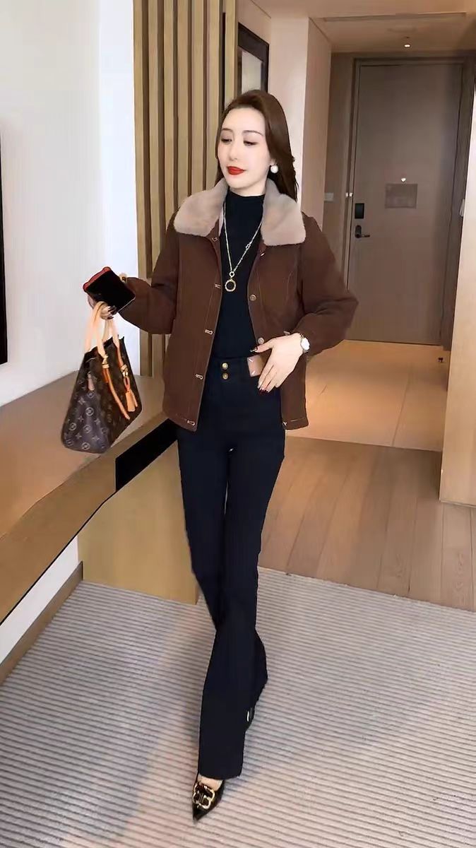 기모 두꺼운 데님 코트 여자 2024 겨울 새로운 유행 느슨한 슬리밍 짧은 재킷 탑스토어 가기