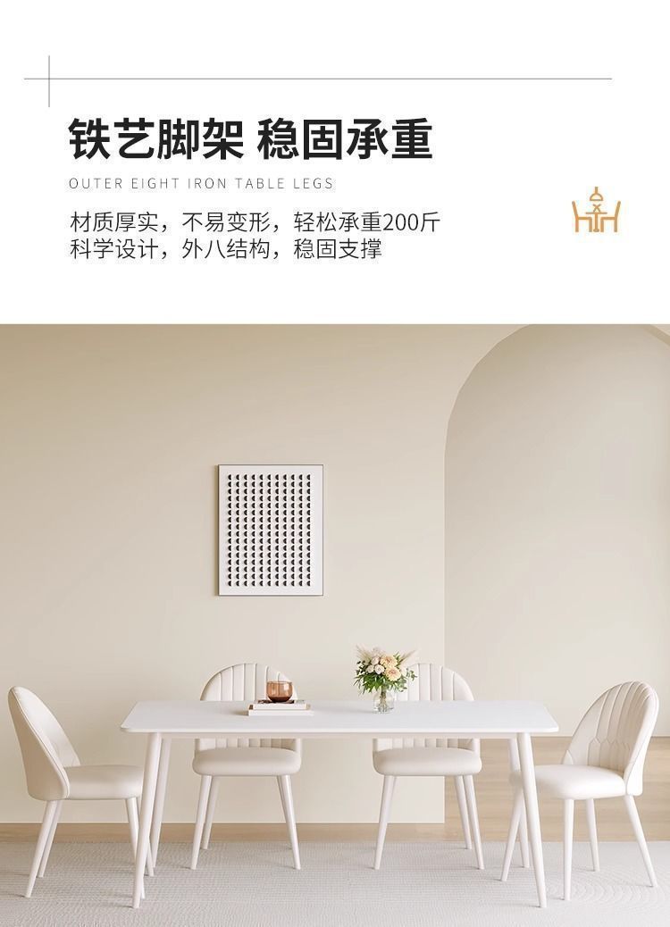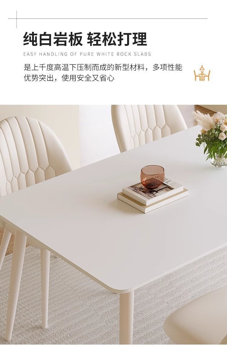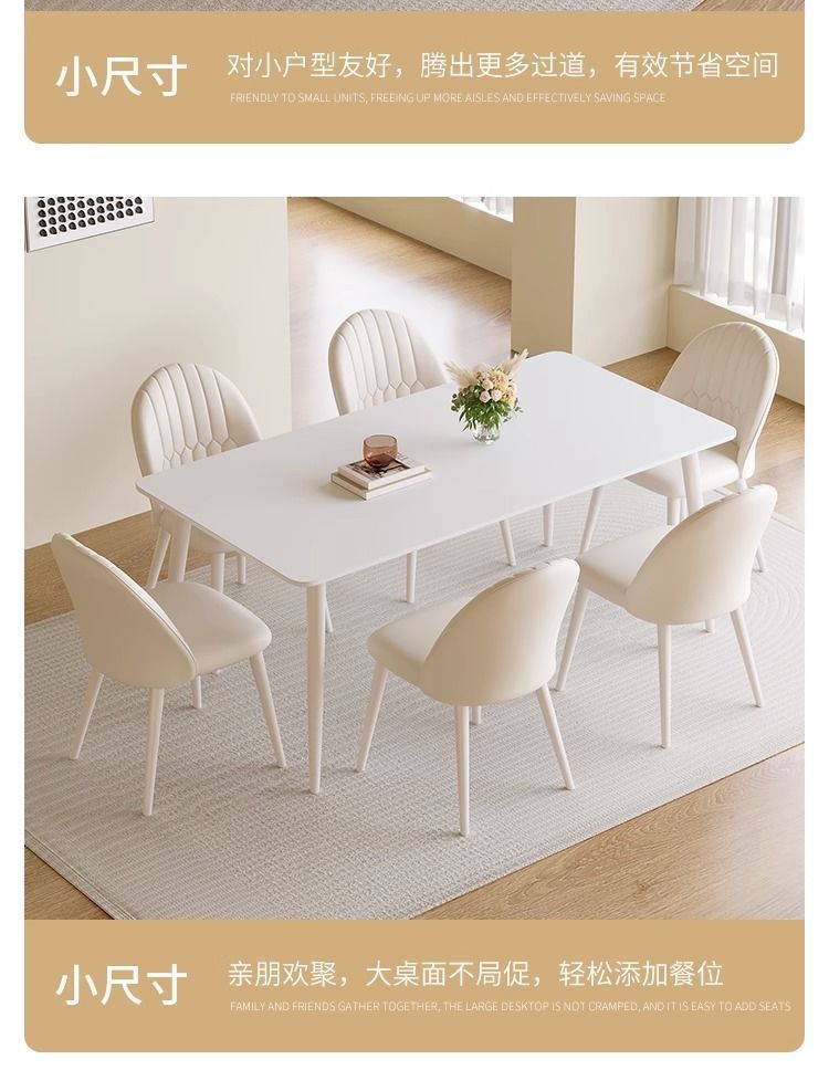 크림 스타일 순수한 화이트 록 플레이트 식탁 및 의자 작은 아파트 현대 간단한 빛 럭셔리 가구 미니멀리스트 직사각형 테이블 조합스토어 가기