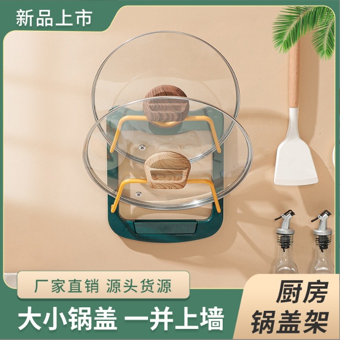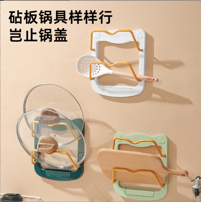 다기능 가정용 벽 장착 팟 커버 랙 주방 펀치 프리 팟 커버 랙 스토리지 랙 도마 스토리지 랙