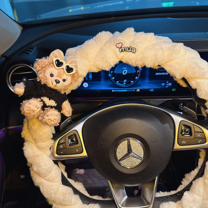 2024 새로운 하이 엔드 플러시 부드러운 따뜻한 자동차 스티어링 휠 커버 귀여운 여신 자동차 실내 장식 핸들 커버스토어 가기