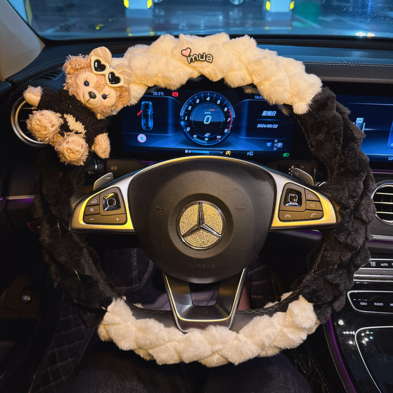 2024 새로운 하이 엔드 플러시 부드러운 따뜻한 자동차 스티어링 휠 커버 귀여운 여신 자동차 실내 장식 핸들 커버