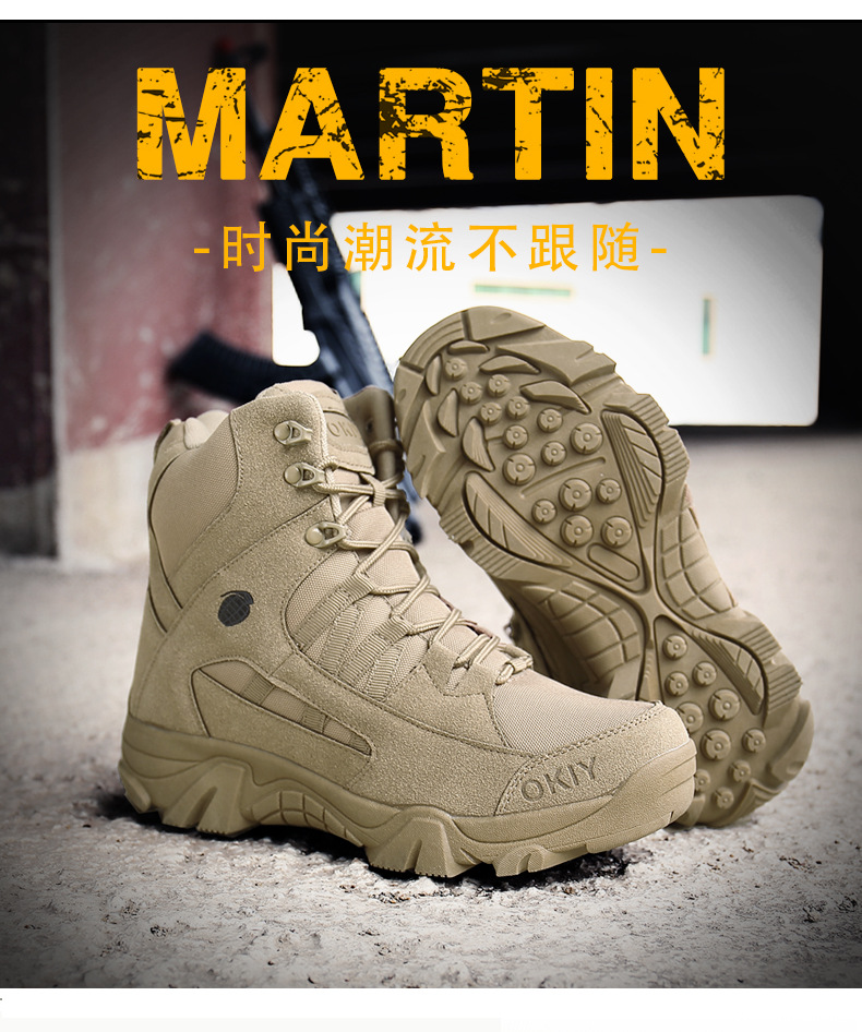 사계절 군사 부츠 특수 부대 등산 부츠 야외 방수 하이 탑 사막 부츠 전술 부츠 플러스 사이즈 군사 신발 남성 미끄럼 방지