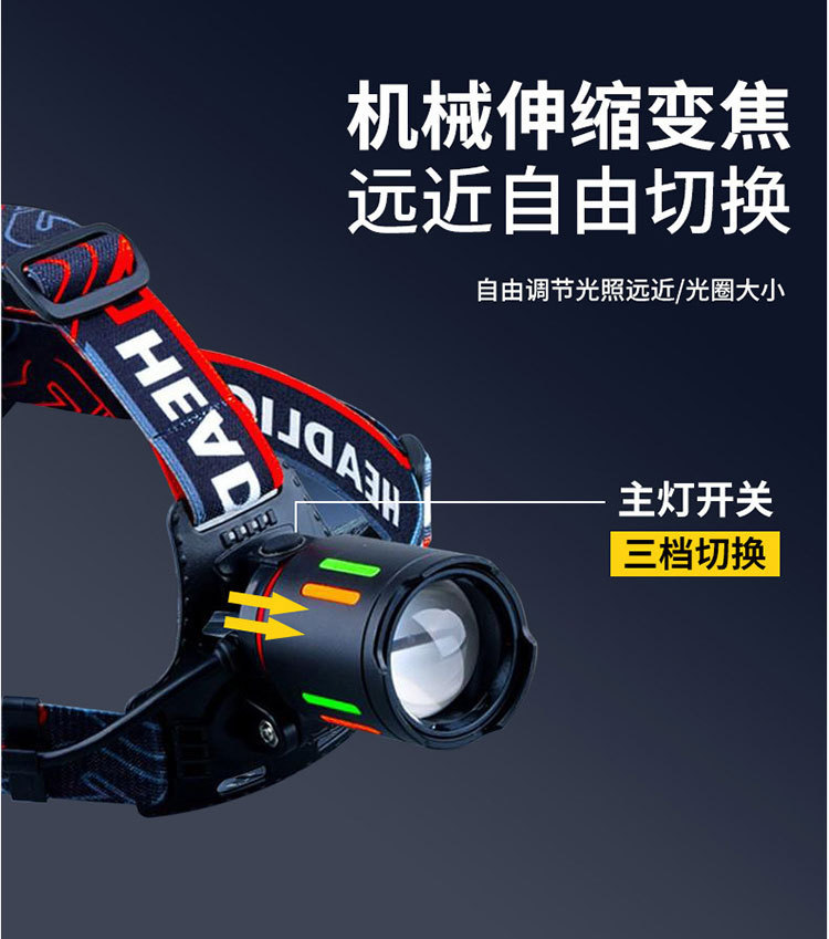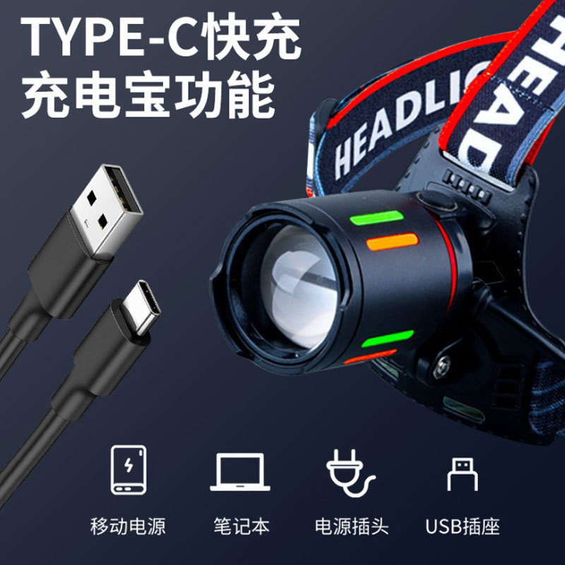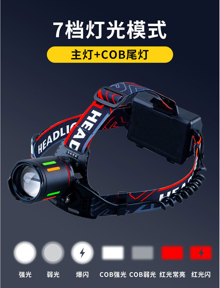 국경 간 폭발 LED 강력한 조명 줌 USB 충전 야외 방수 긴 내구성 휴대용 장거리 COB 망원경 헤드 램프
