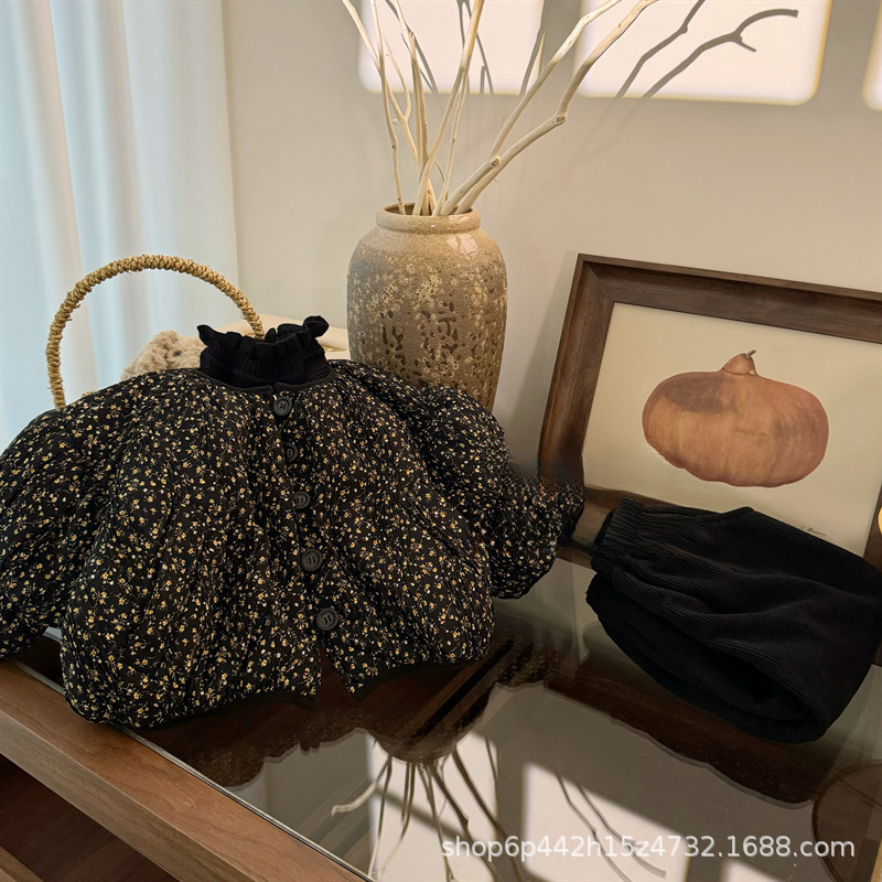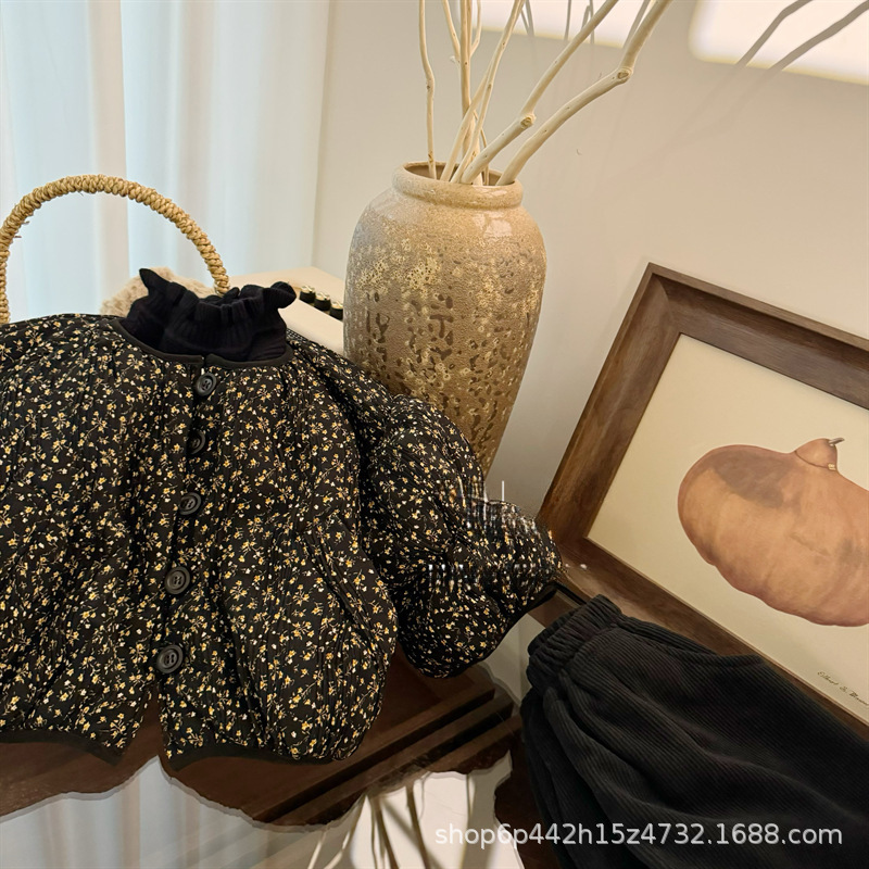 소녀 한국식 양털 자켓 가을과 겨울 새로운 두꺼운 어린이 면화 패딩 코트 꽃 면화 패딩 코트 스타일 탑 0039A100