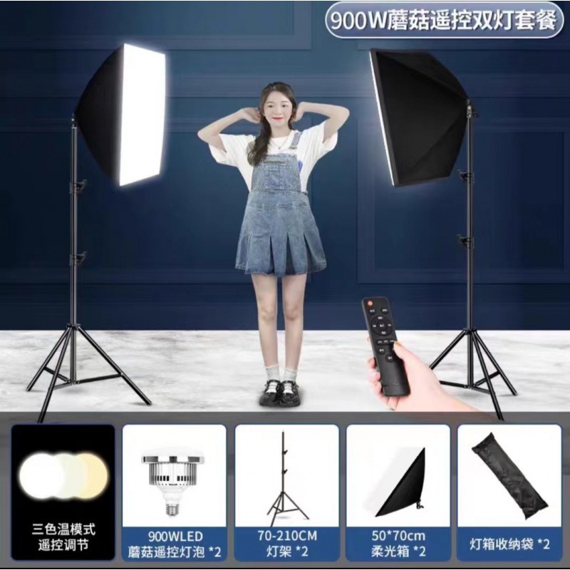• 단일 램프 [고광 900W 3색 리모콘 버섯 램프] + 소프트 박스 + 2.1M 브래킷