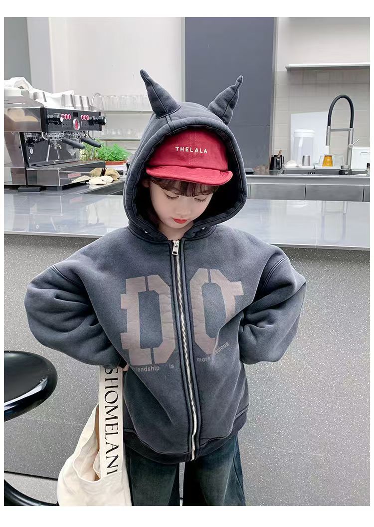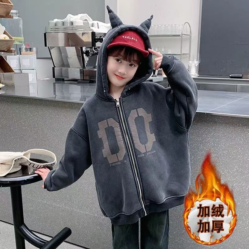 소년과 소녀 카디건 플러스 벨벳 스웨트 셔츠 2025 늦가을, 겨울 어린이 코트 중년 및 노년층 어린이 두꺼운 만화상의스토어 가기