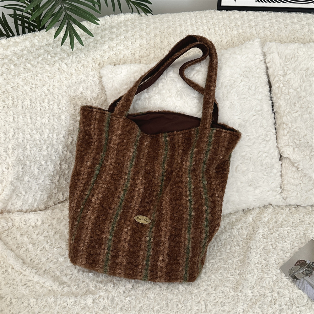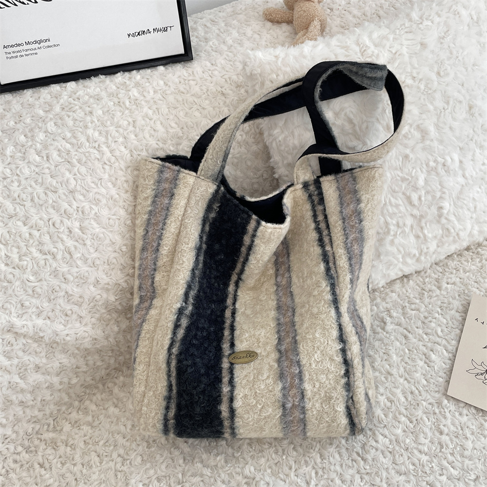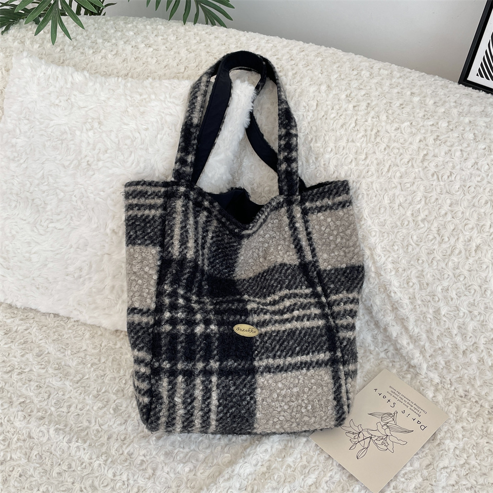 411203 가을과 겨울 새로운 격자 무늬 수직 봉제 한국식 양면 이중 목적 대용량 어깨 토트 백