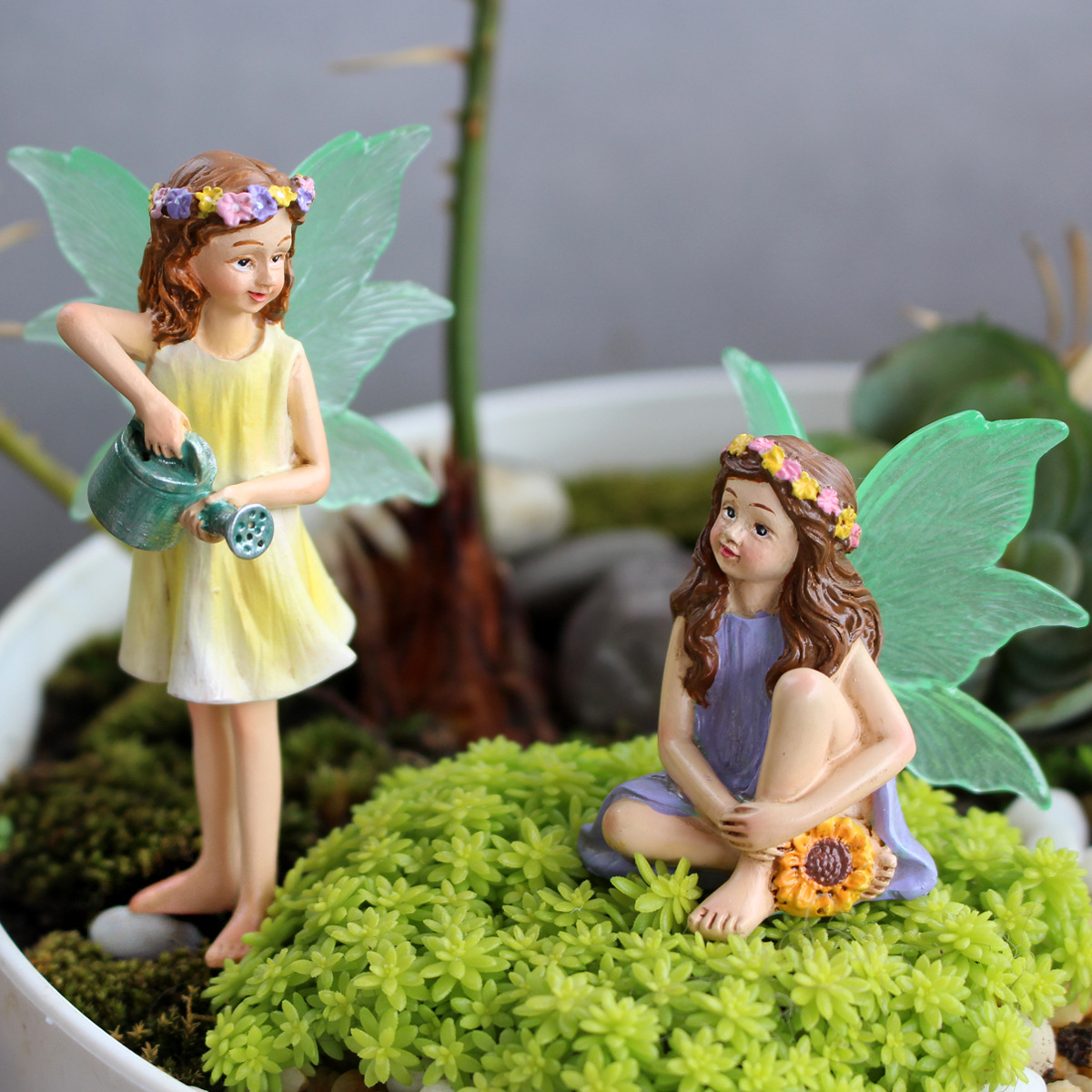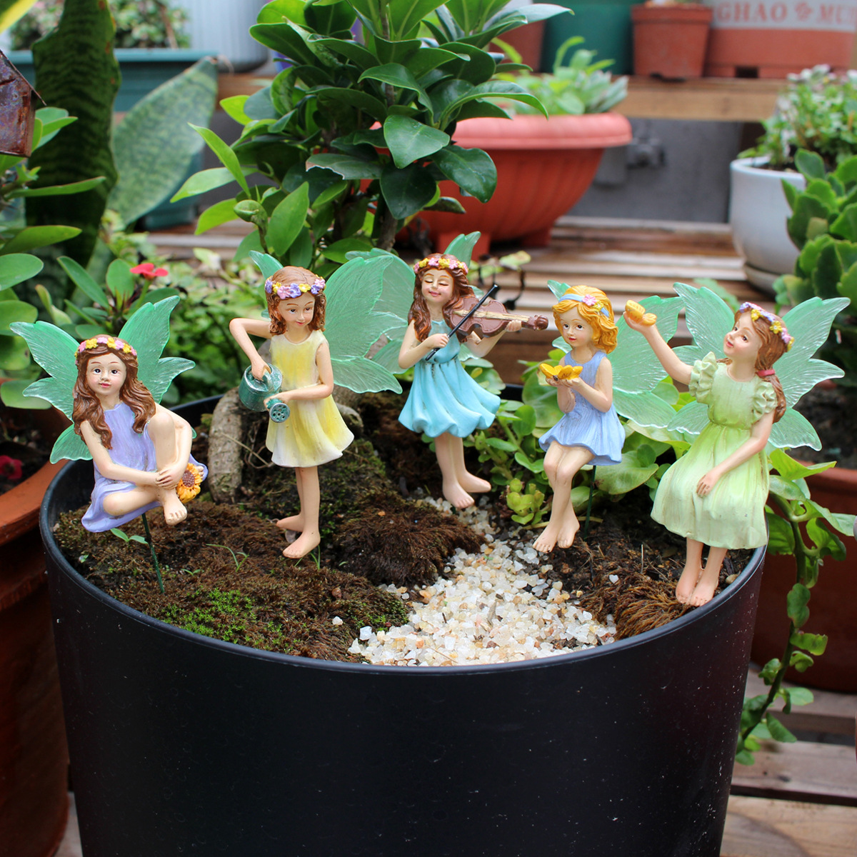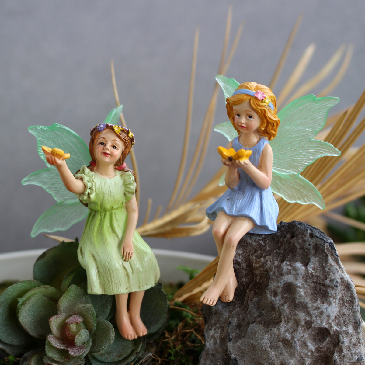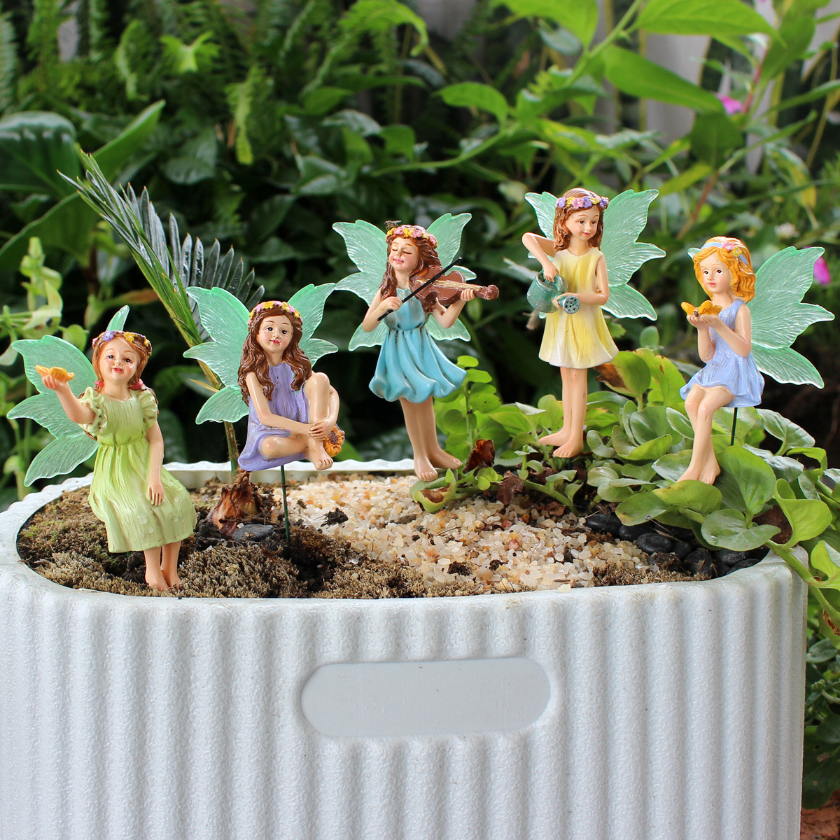 국경 간 새로운 도착 빛나는 나비 요정 플러그인 야외 정원 안뜰 소형 요정 동상 화분 장식품 풍경