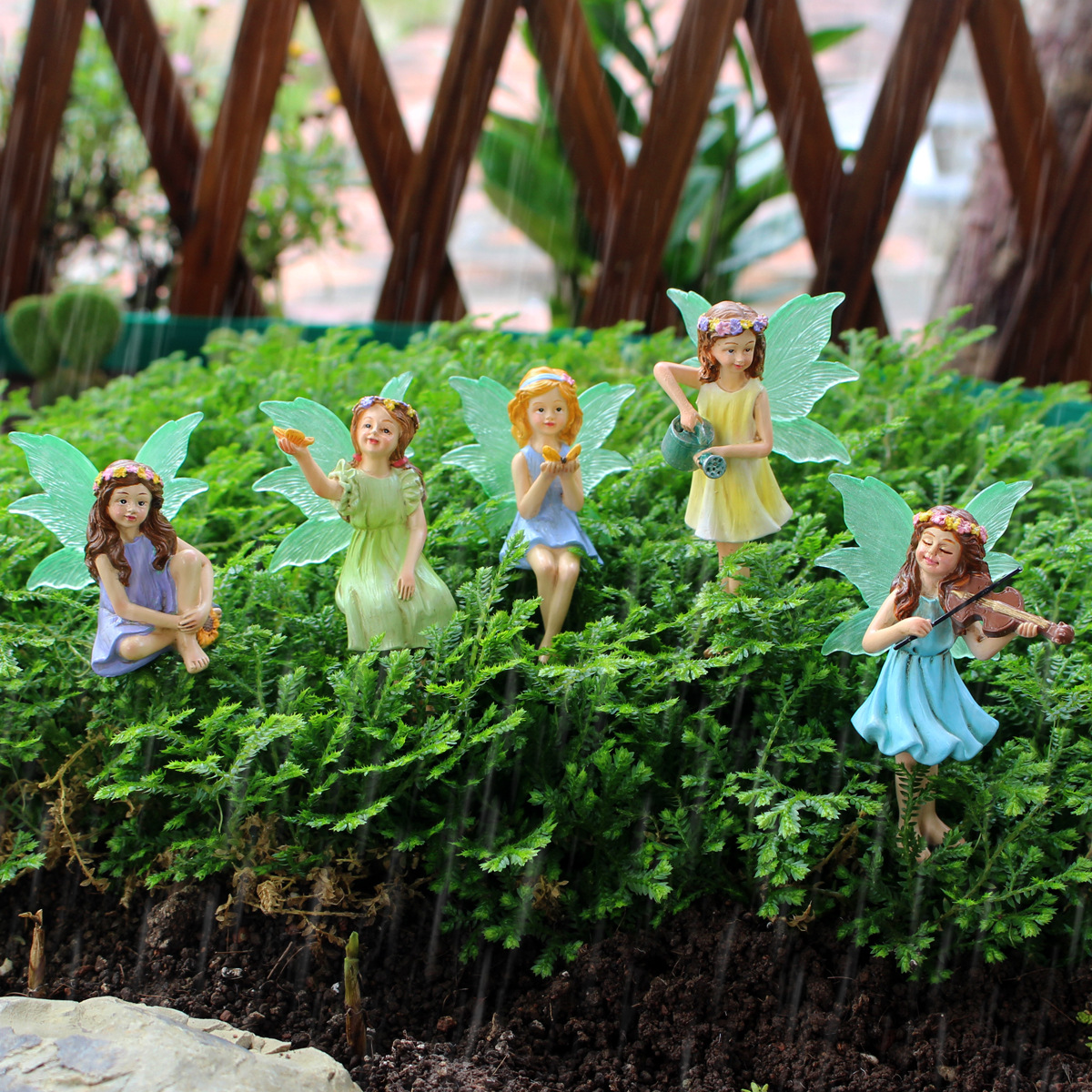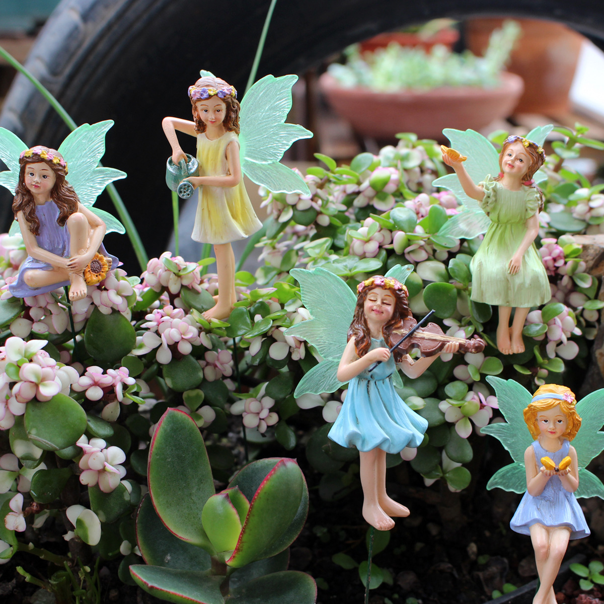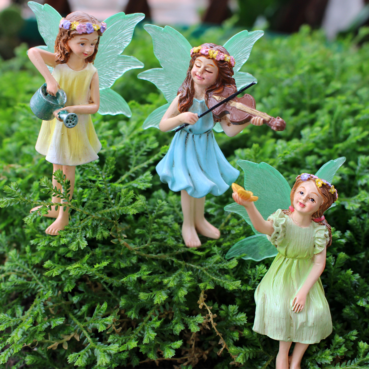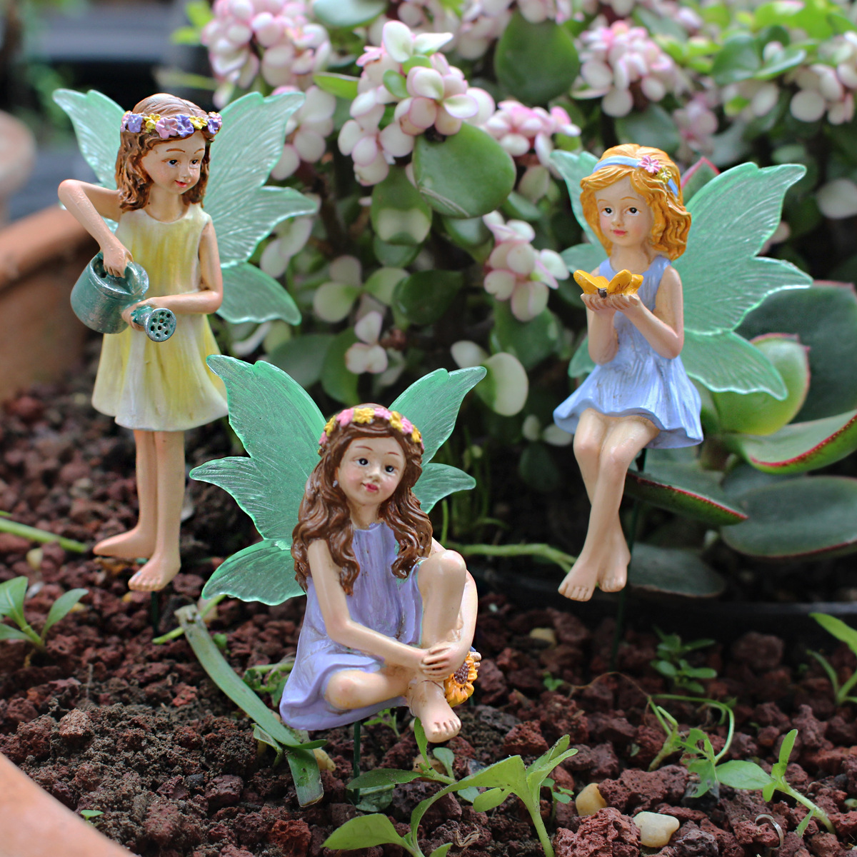 국경 간 새로운 도착 빛나는 나비 요정 플러그인 야외 정원 안뜰 소형 요정 동상 화분 장식품 풍경
