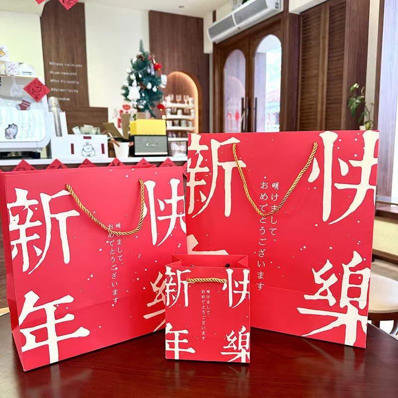 • [두껍게] 새해 복 많이 받으세요 빨간색, 흰색 판지, 중간 크기(길이 28 높이 28 너비 14cm)
