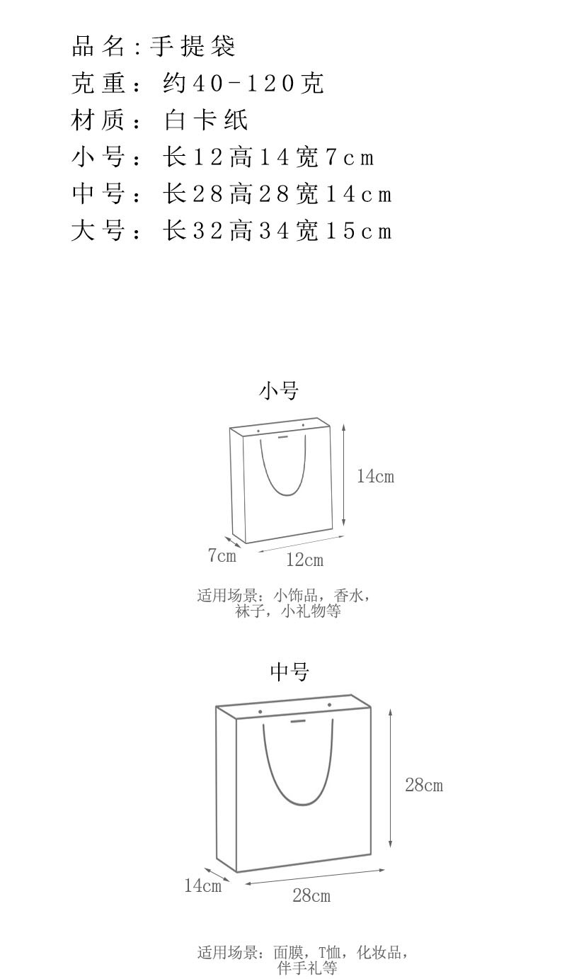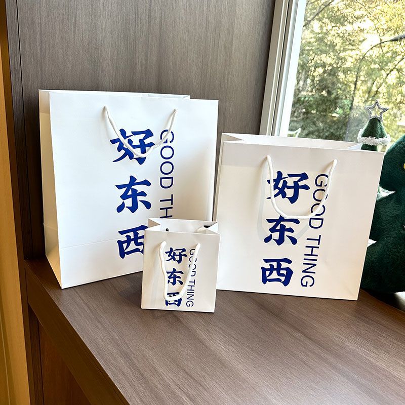 오리지널 두꺼운 백색 카드지 명절 선물 가방 고급 심플 생일 선물 핸드백 종이 가방 대용량 다용도스토어 가기