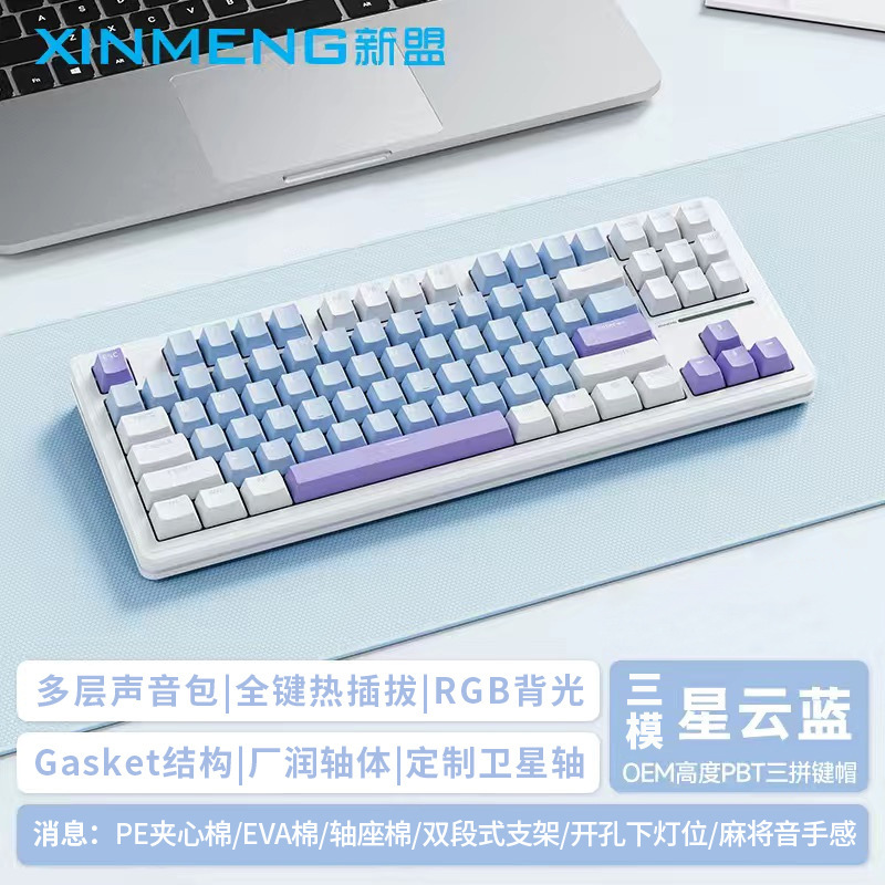 Xinmeng M87ProV2 맞춤형 기계 키보드 무선 3 모드 블루투스 음소거 핫 플러그 게임 사무실 측면 조각