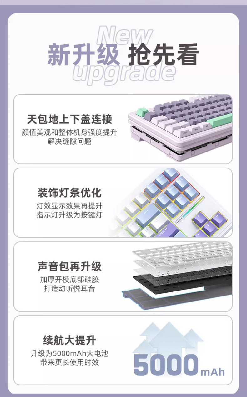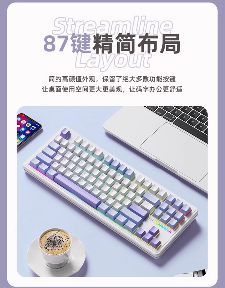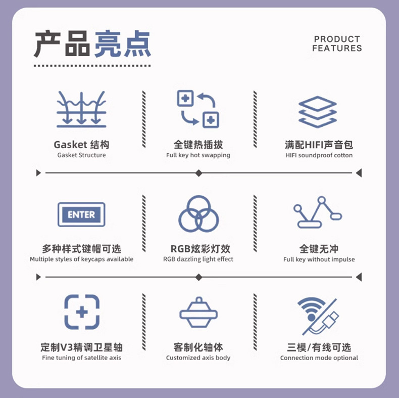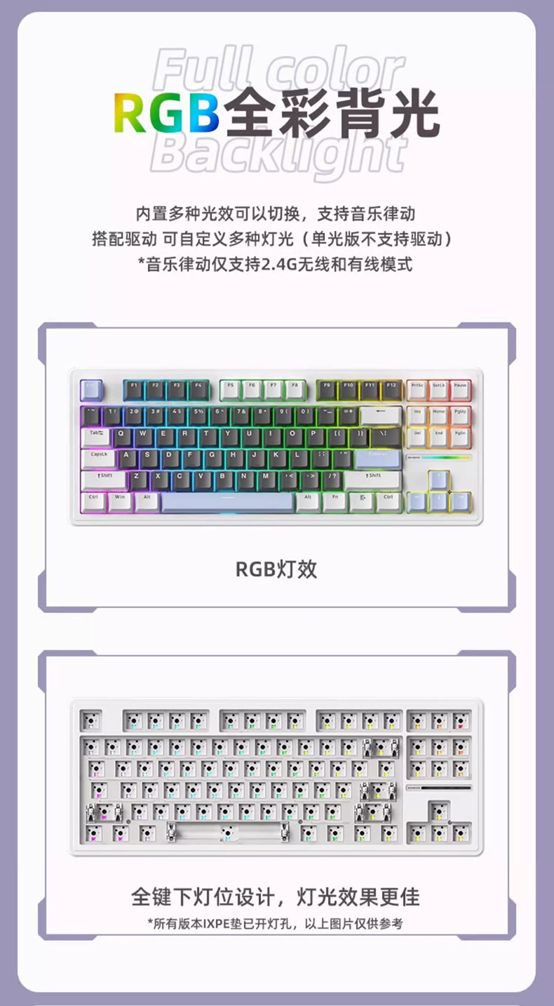• Twilight Purple 측면 각인 광 투과성 - 무선 3모드 - RGB 핫스가능(V2 버전)