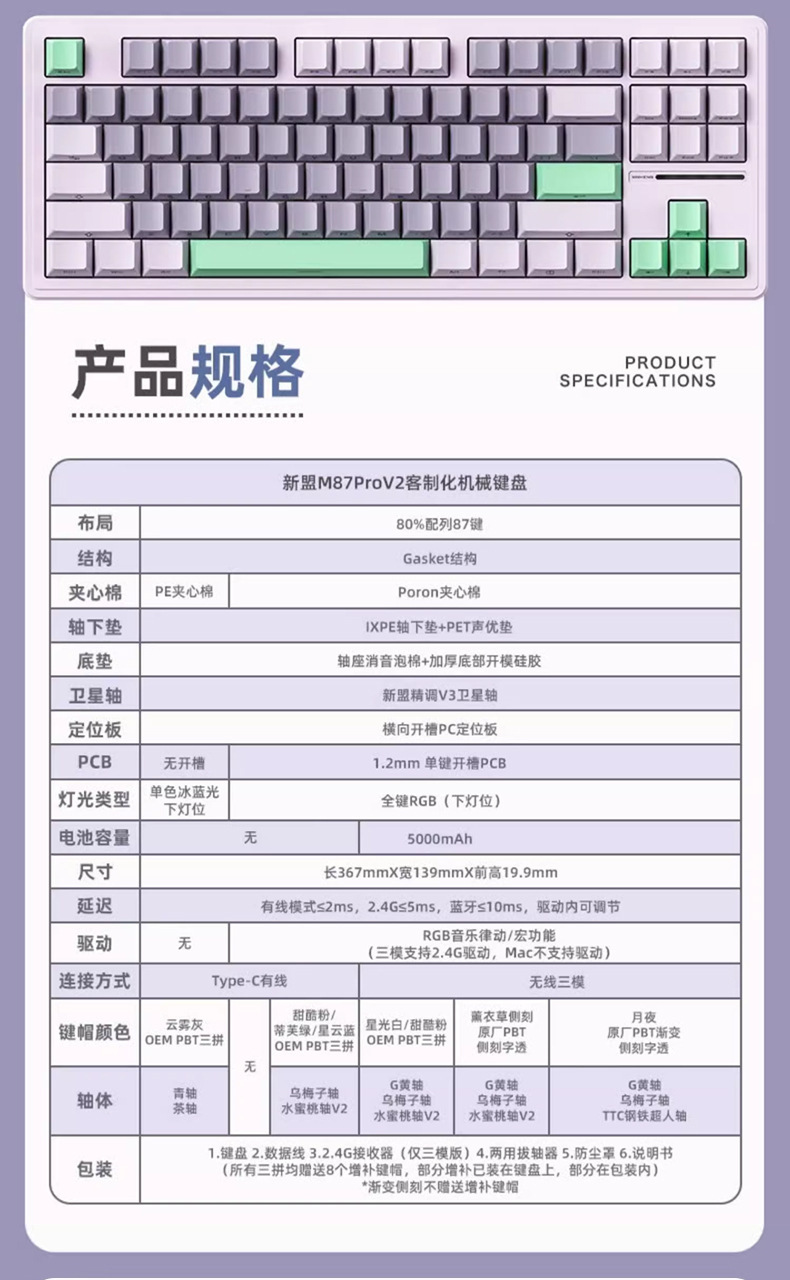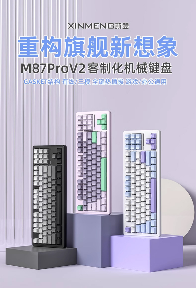 新盟M87ProV2客制化机械键盘无线三模蓝牙静音热插拔游戏办公侧刻