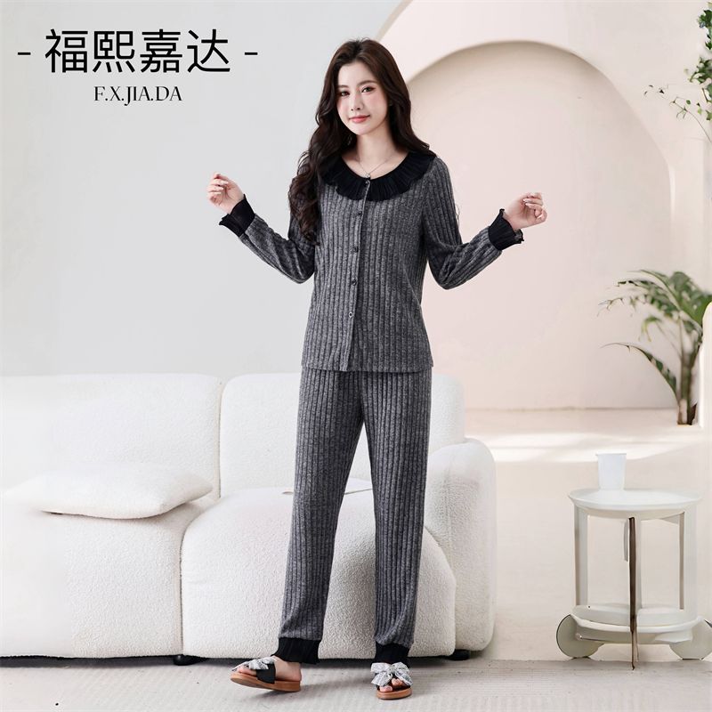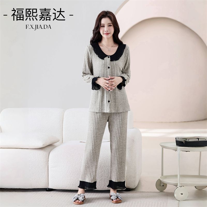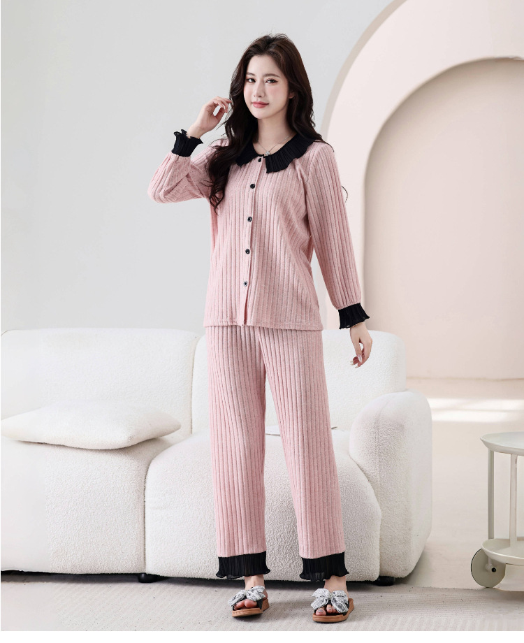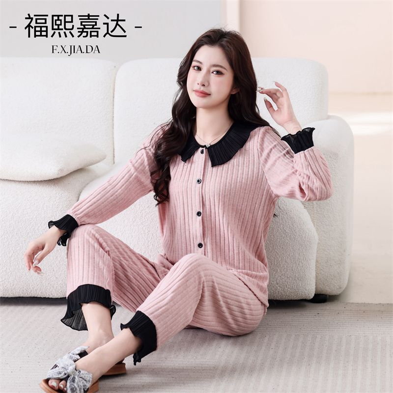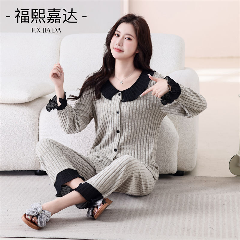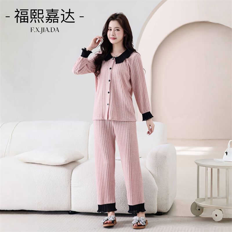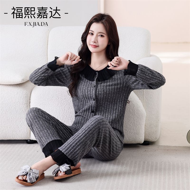 높은 가치의 인기 파자마 여성 인형 칼라 달콤한 긴팔 가을 겨울 따뜻한 하이 엔드 라이트 럭셔리 홈 의류 세트스토어 가기