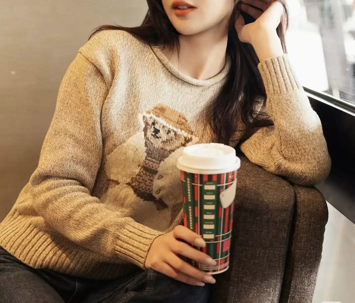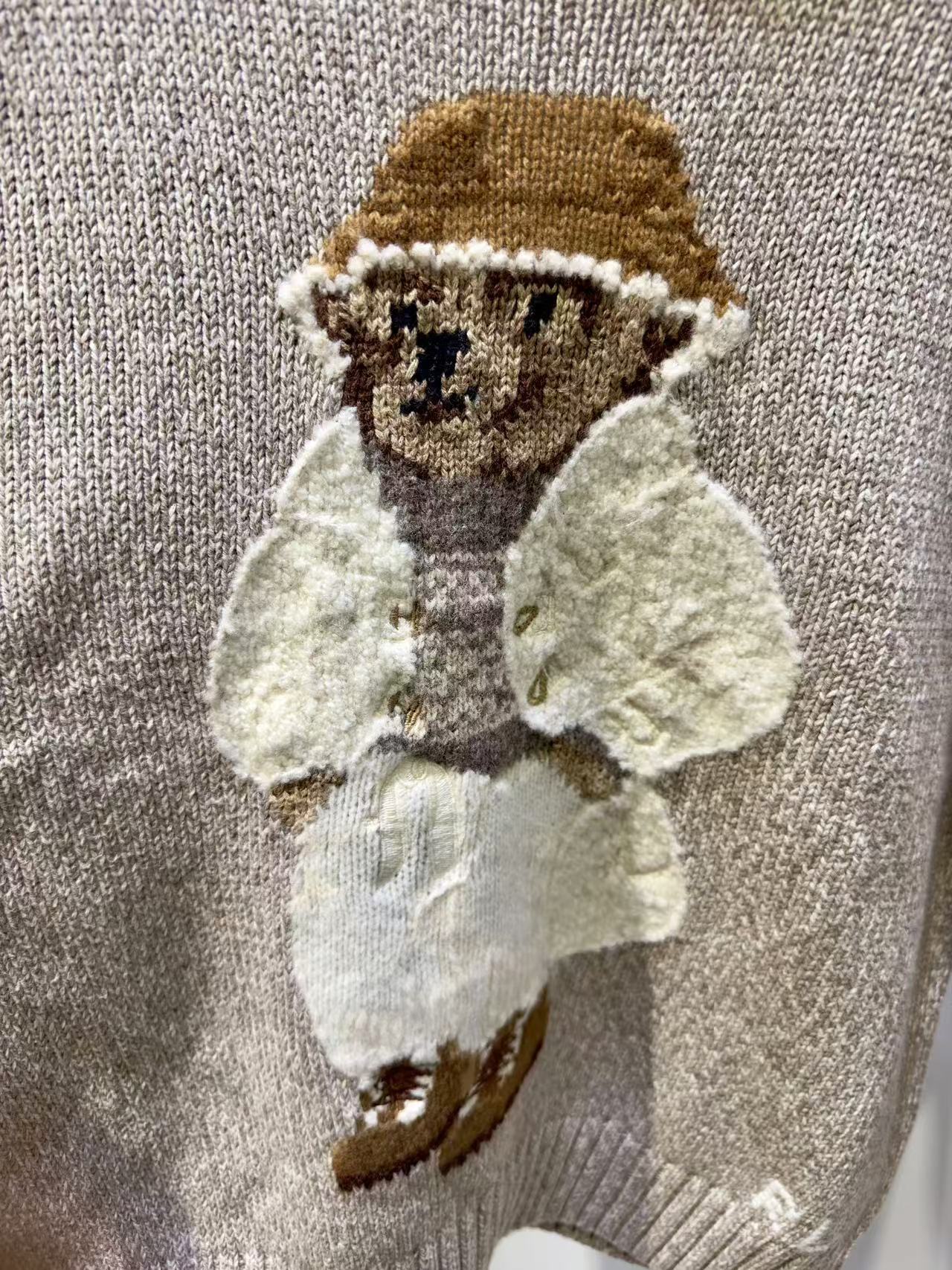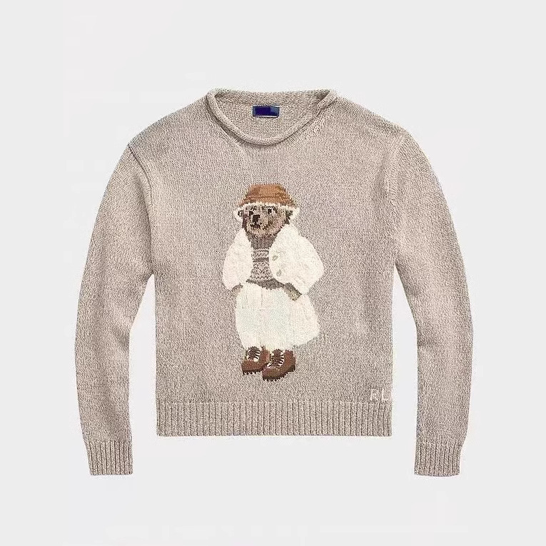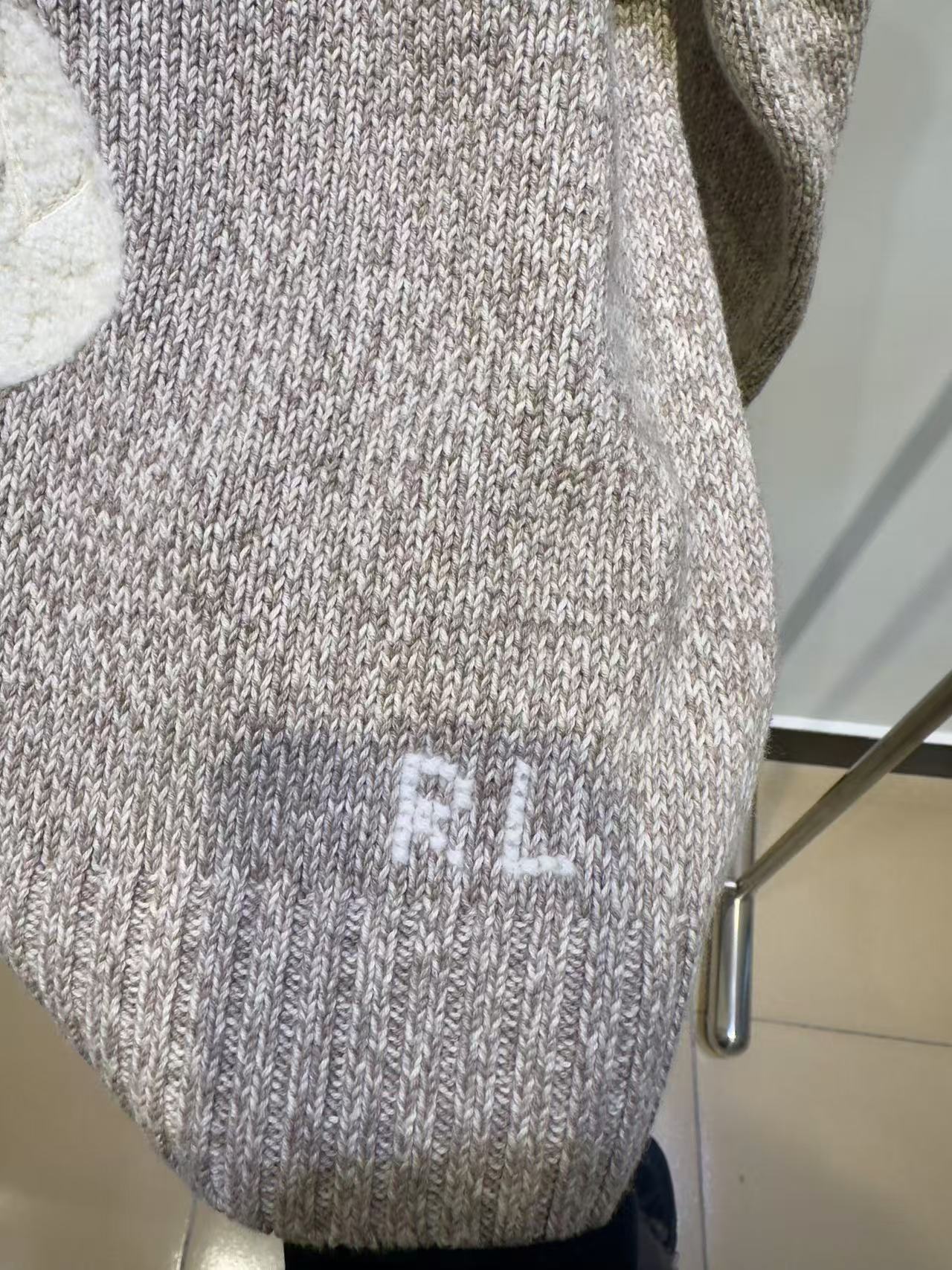 새로운 2024 가을과 겨울 랄프 로렌 베어 여성면 니트 셔츠 풀오버 카키 느슨한 긴 소매 크루 넥 스웨터