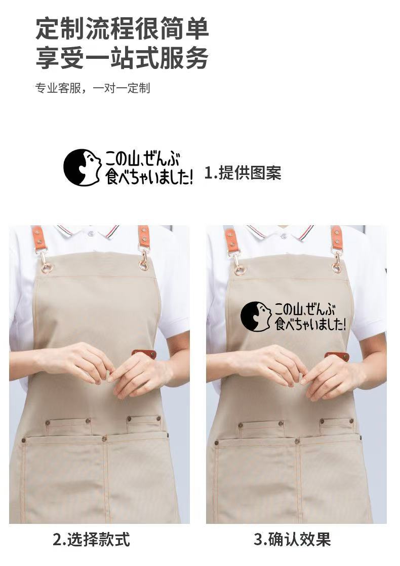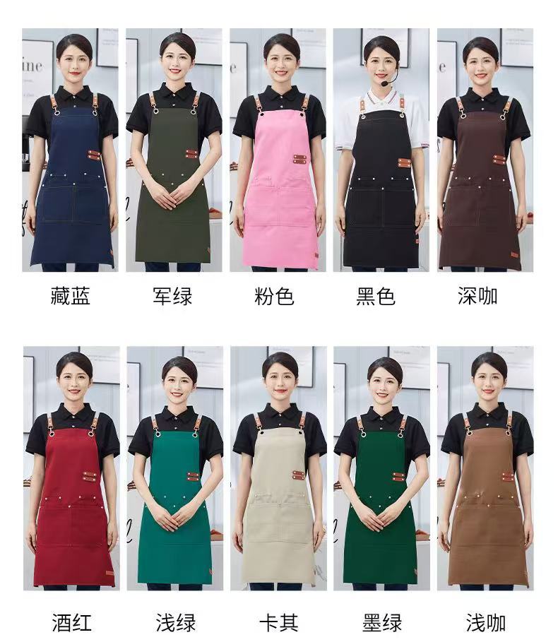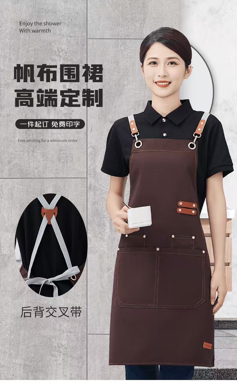 방수 캔버스 앞치마 맞춤 로고 인쇄 한국 우유 차 커피 숍 케이터링 슈퍼마켓 바지 대외 무역 도매