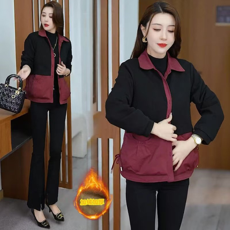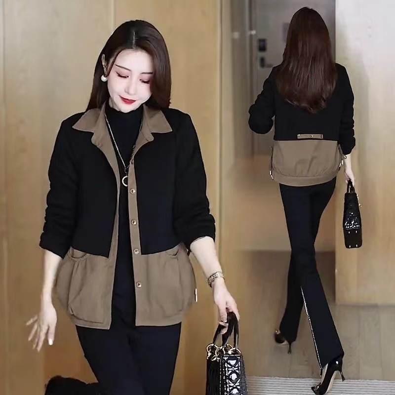 작은 캐주얼 연령 감소 짧은 코트 여성의 가을 및 겨울 새로운 유행 바느질 세련된 올 매치 벨리 커버 재킷 탑스토어 가기