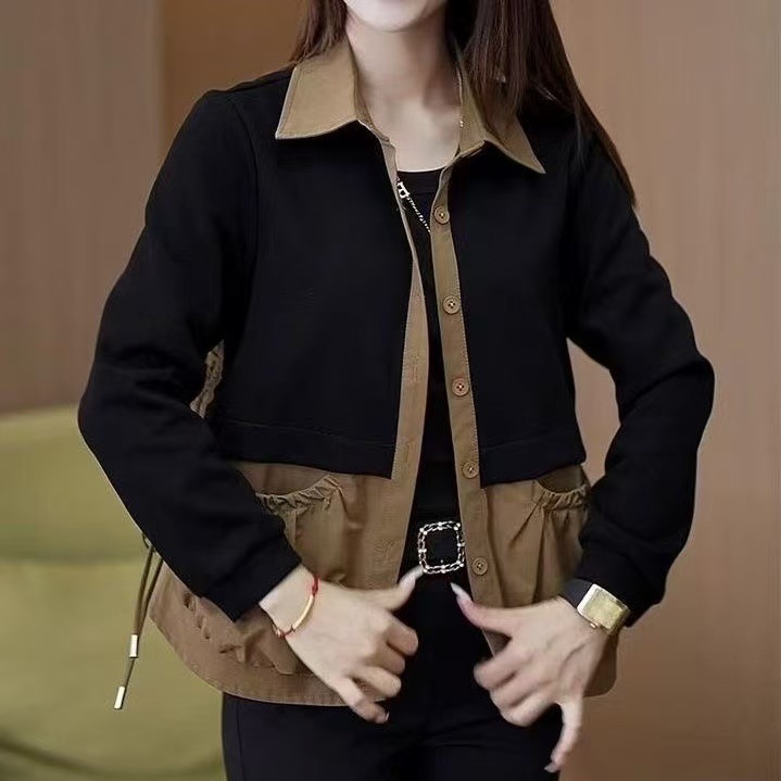 작은 캐주얼 연령 감소 짧은 코트 여성의 가을 및 겨울 새로운 유행 바느질 세련된 올 매치 벨리 커버 재킷 탑