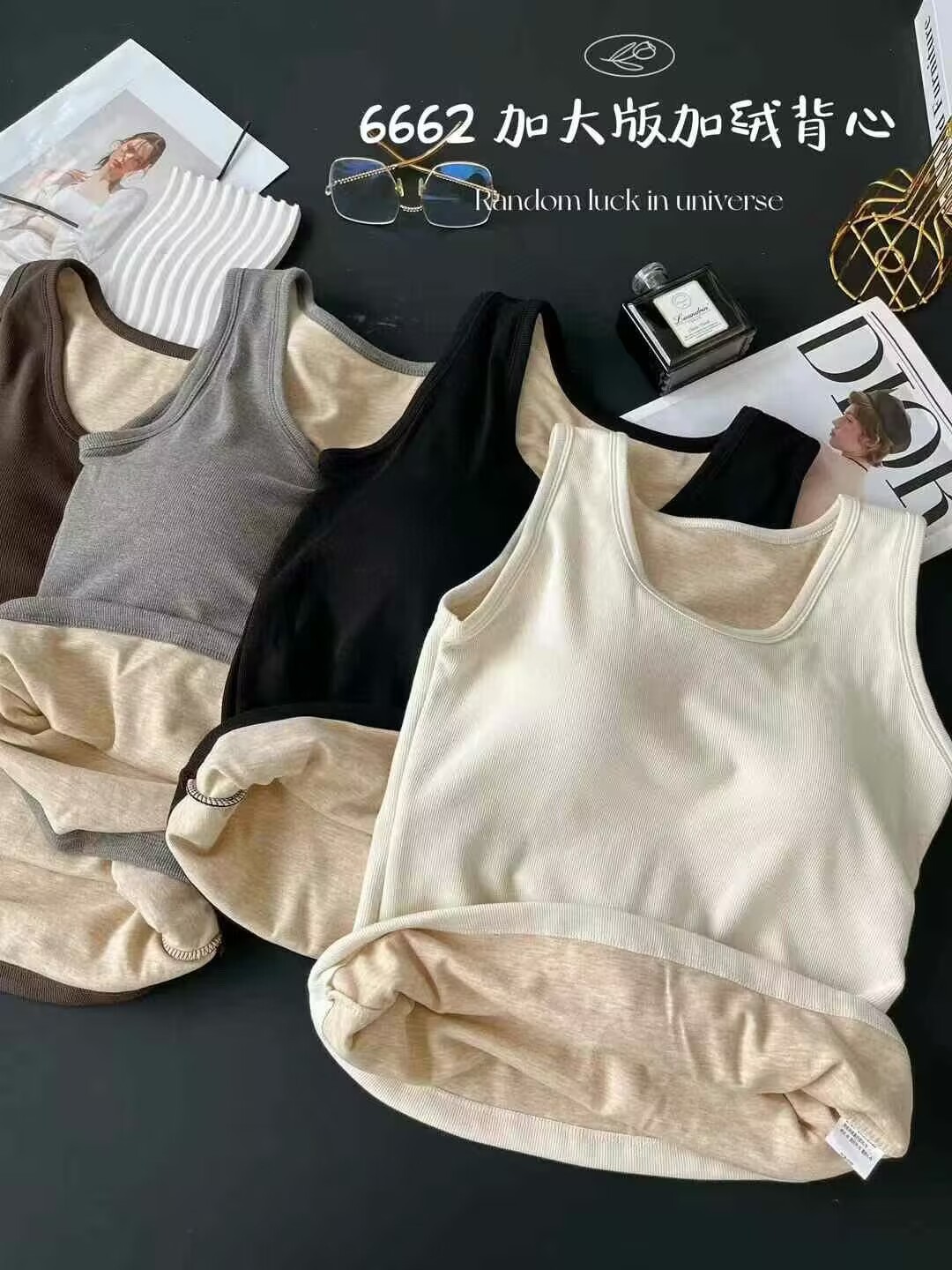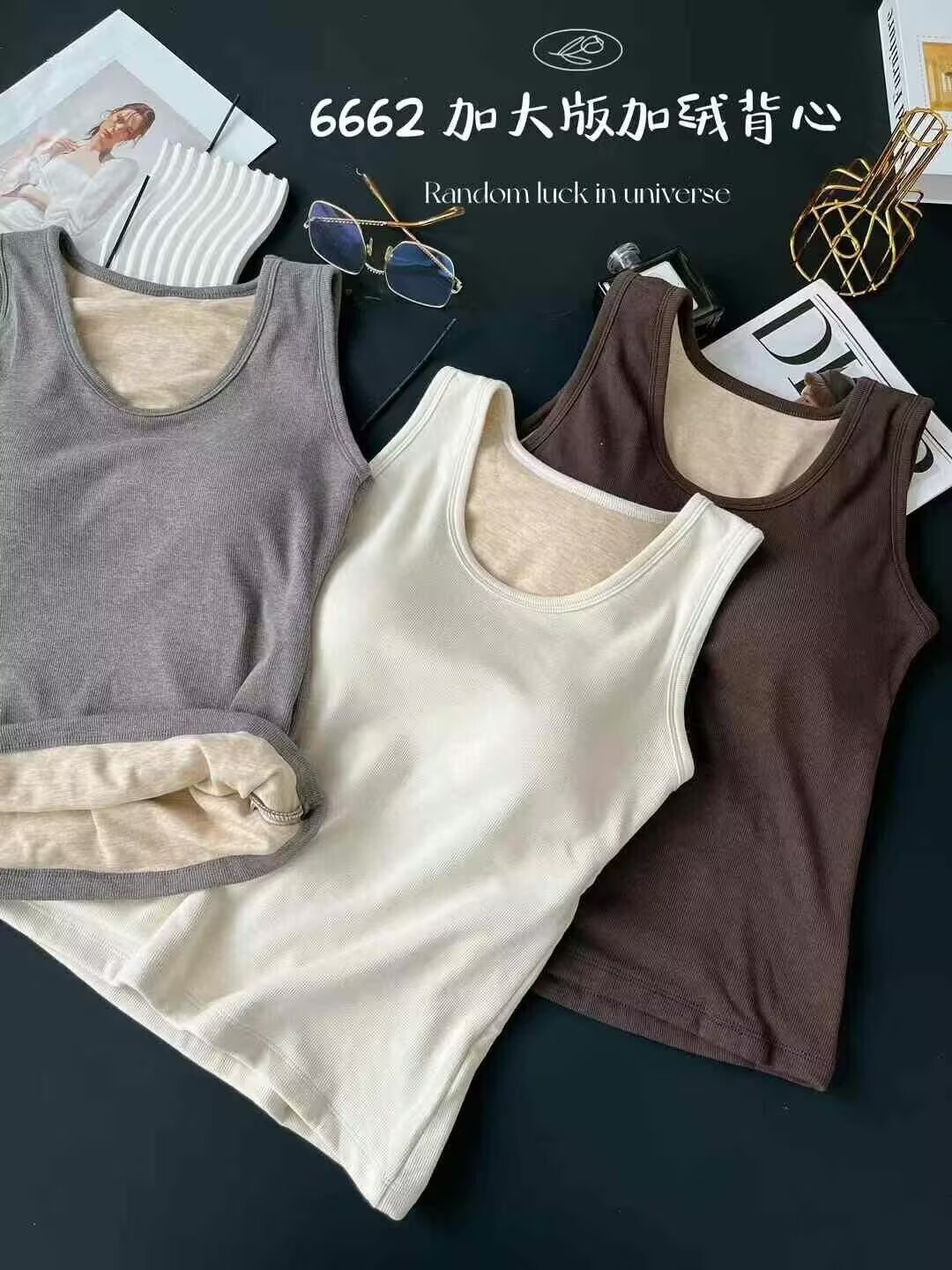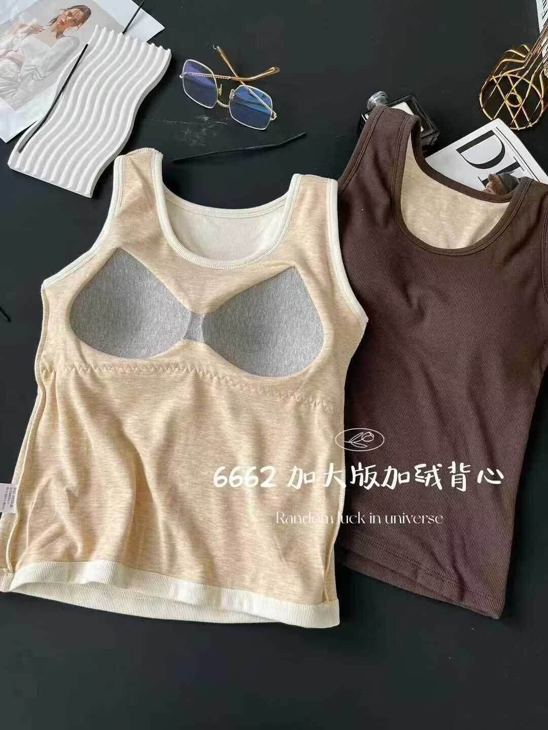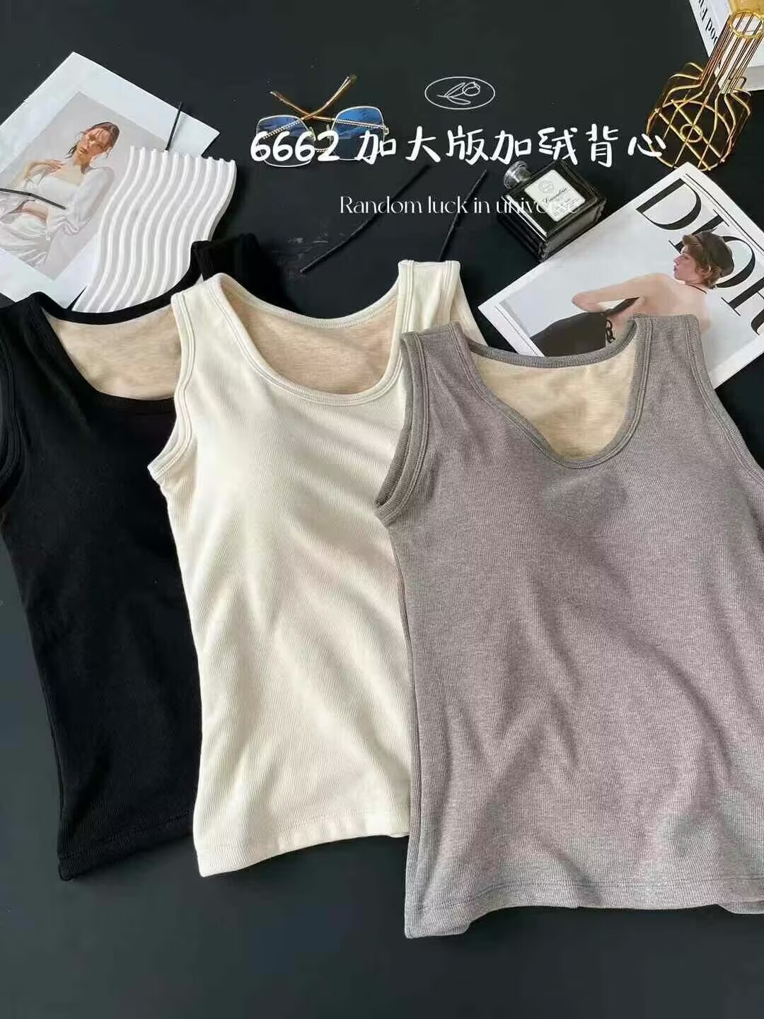6662 편안한 넓은 어깨 크루 플러스 사이즈 흉부 패드 기모 두꺼운 고정 컵 비 착용 브래지머베이스가있는 따뜻한 조끼스토어 가기