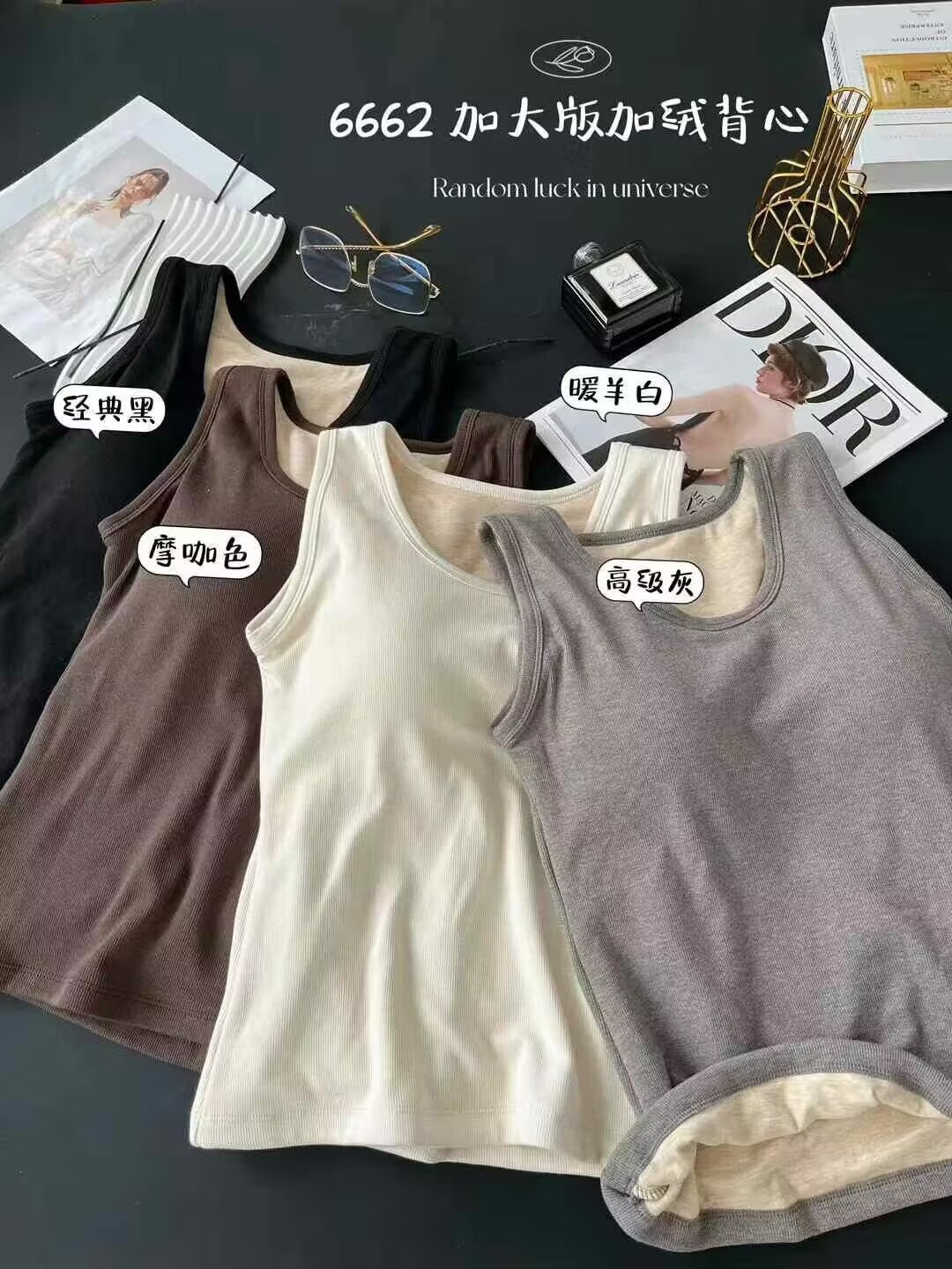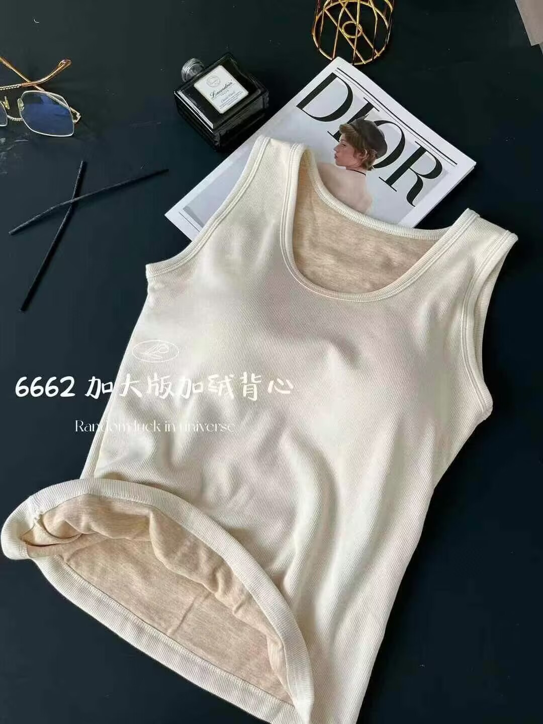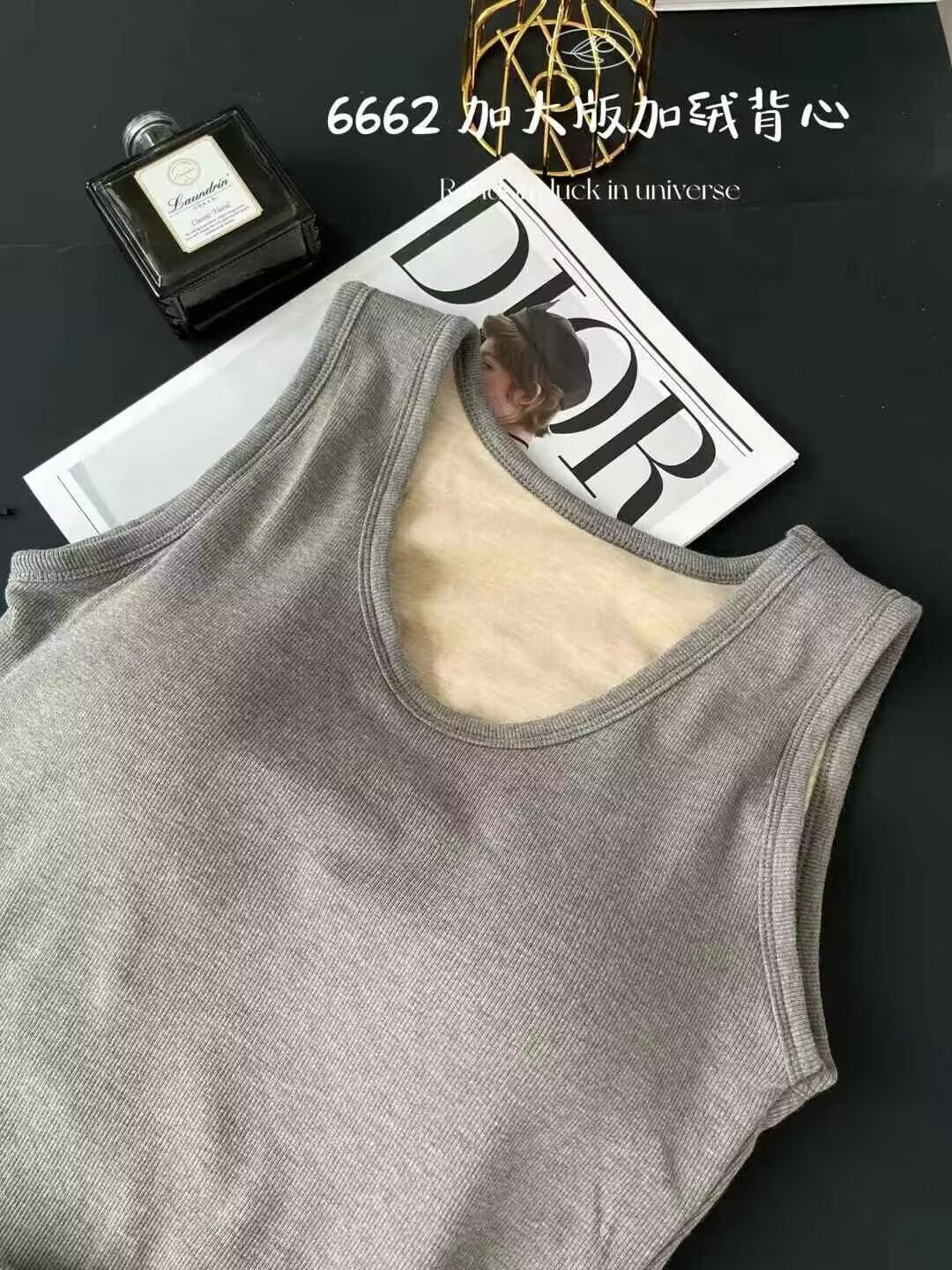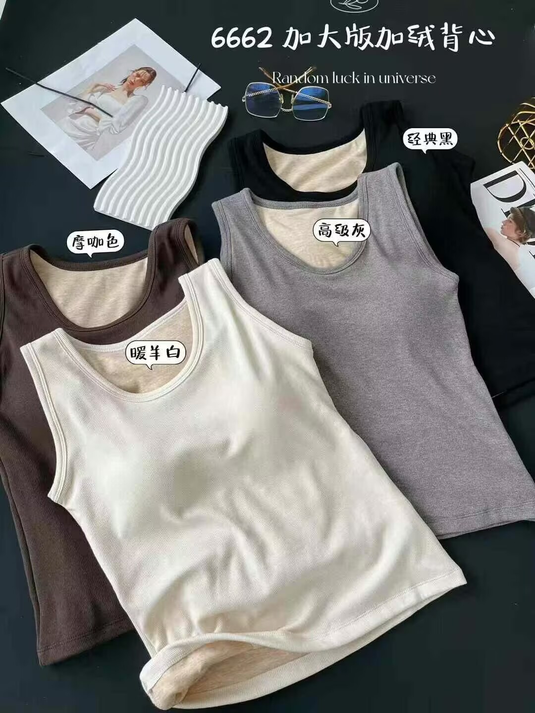 6662 편안한 넓은 어깨 크루 플러스 사이즈 흉부 패드 기모 두꺼운 고정 컵 비 착용 브래지머베이스가있는 따뜻한 조끼스토어 가기