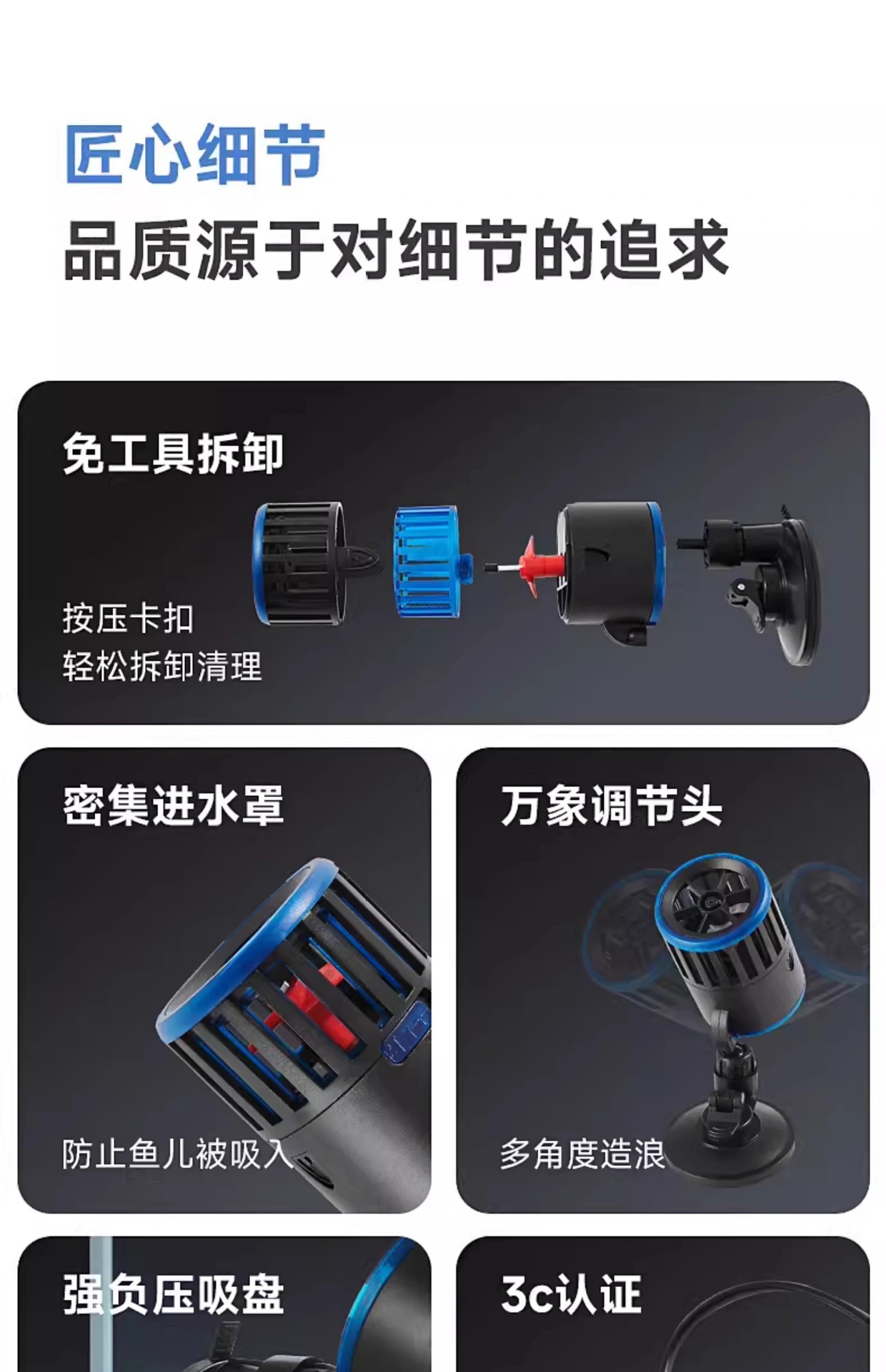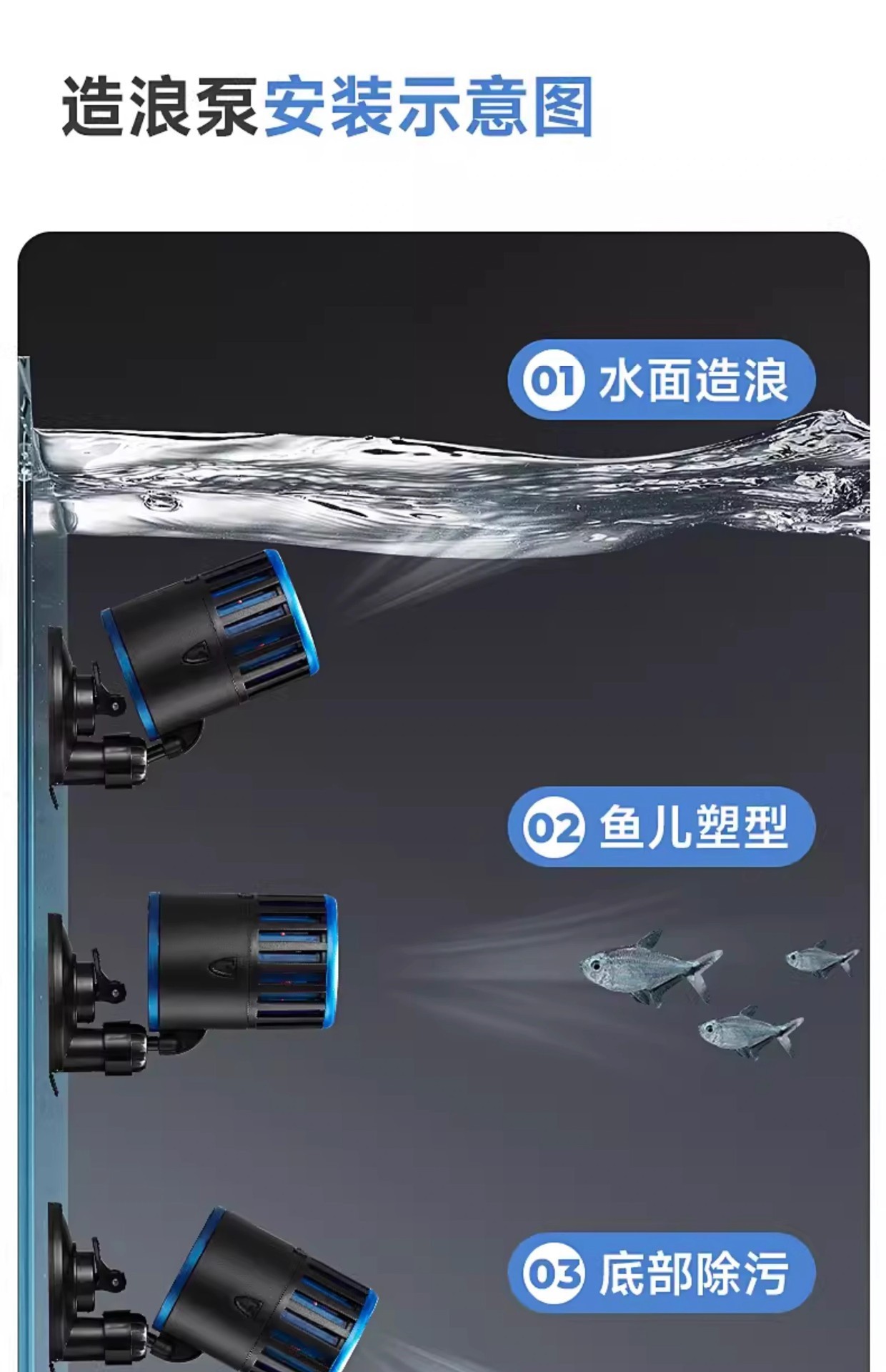 Yee 웨이브 만들기 펌프 매우 조용한 어항 서퍼 펌프 더블 헤드 청소 유물 수족관 흡입 컵 만들기 펌프 배설물 송풍기