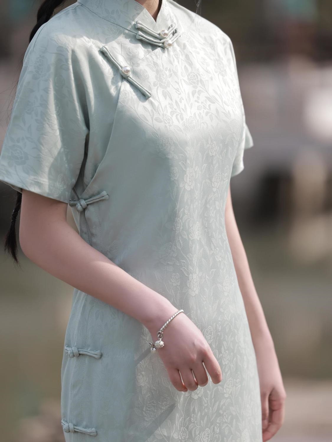 봄과 여름 청윤 브로케이드 어깨 소매 컬러 젊은 버전 느슨한 소녀 복고풍 스타일 고대 카디건 청삼스토어 가기