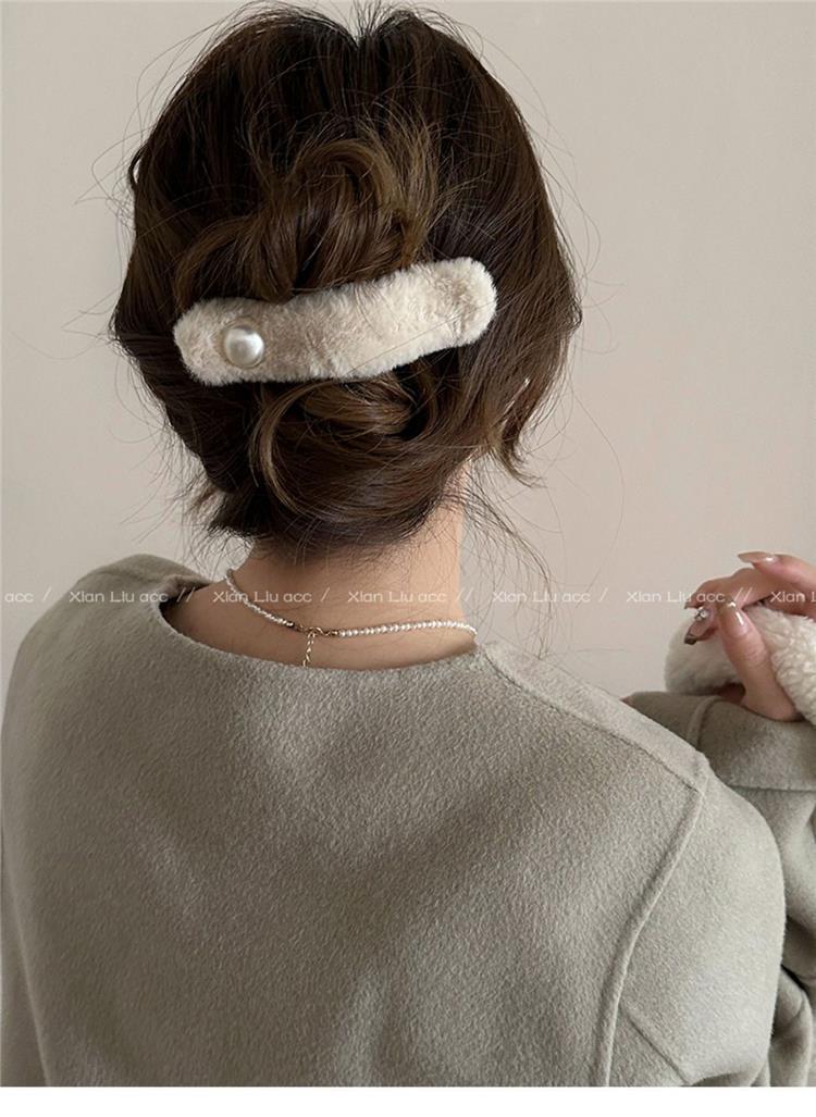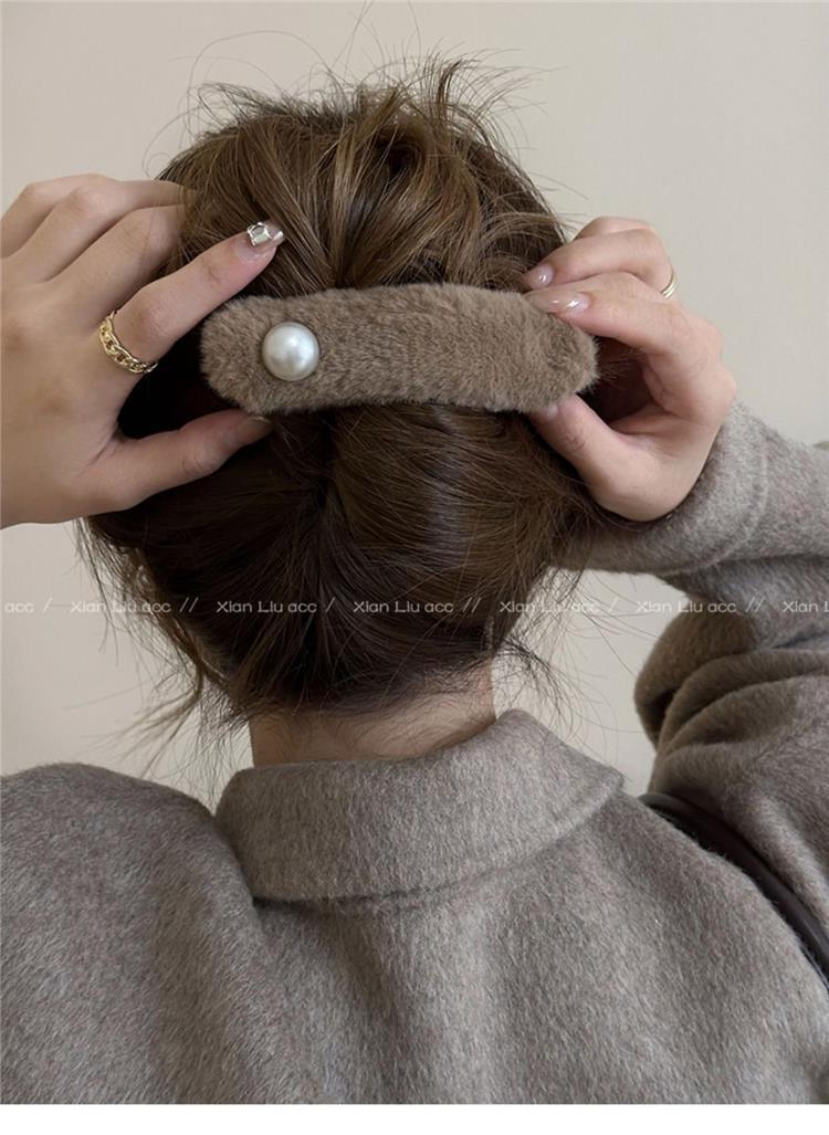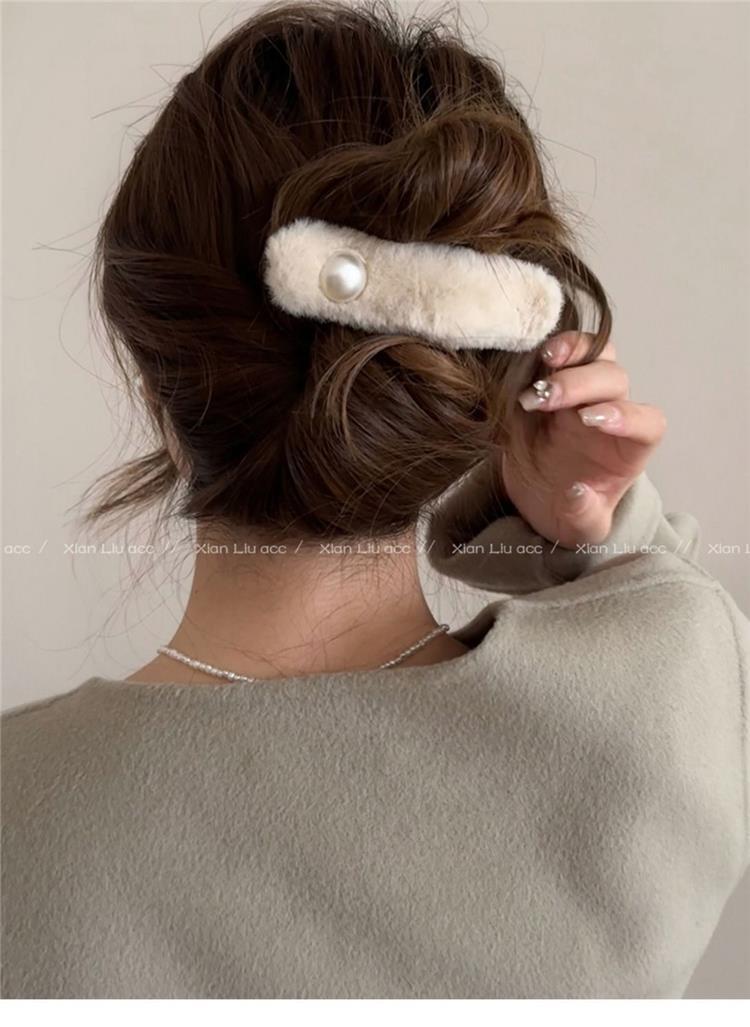 가을과 겨울 봉제 진주 머리핀 여성의 2023 새로운 등 머리 상어 클립 우아한 고급 덕빌 클립 헤드웨어스토어 가기