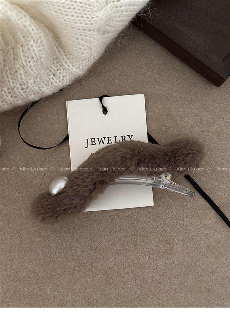 • 다크 커피 - 진주 플러시 덕빌 클립 세트