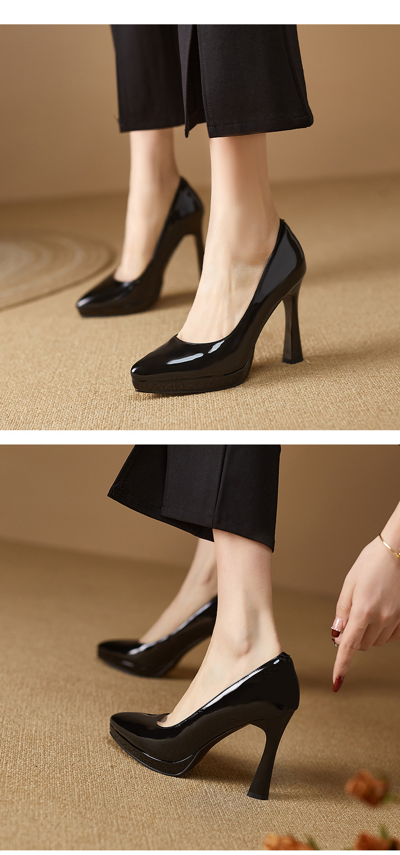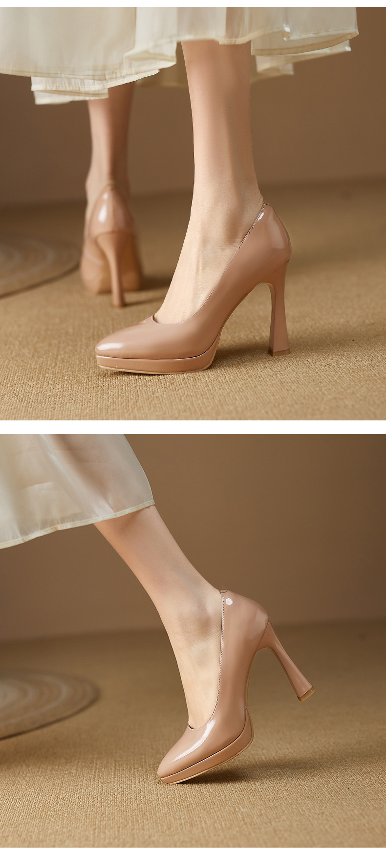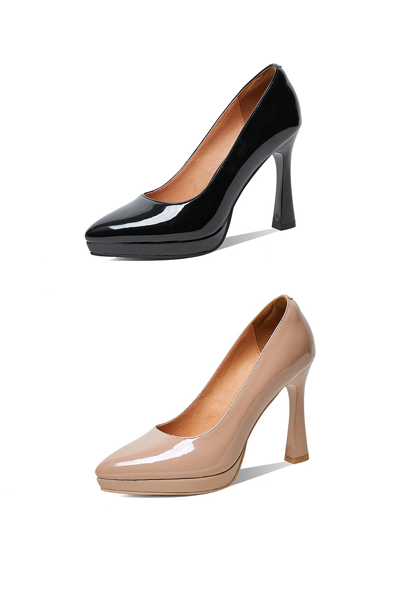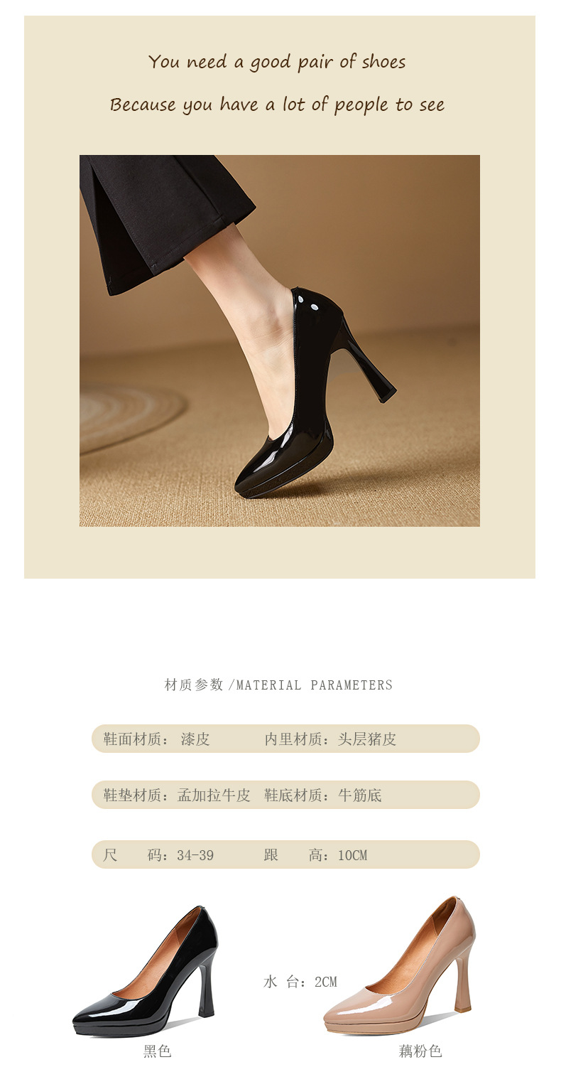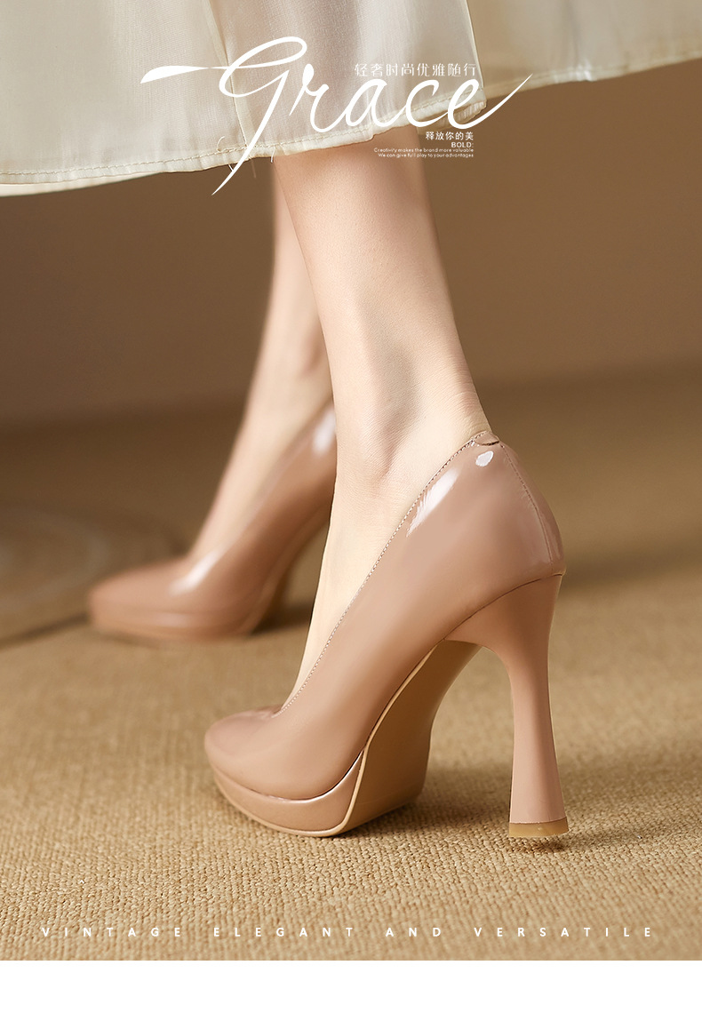 2024 고급 새로운 두꺼운 힐 얇은 힐 슈퍼 하이힐 여성 신발 봄과 가을 우아한 사교계 포인팅 플랫폼 누드 컬러 단층 신발스토어 가기