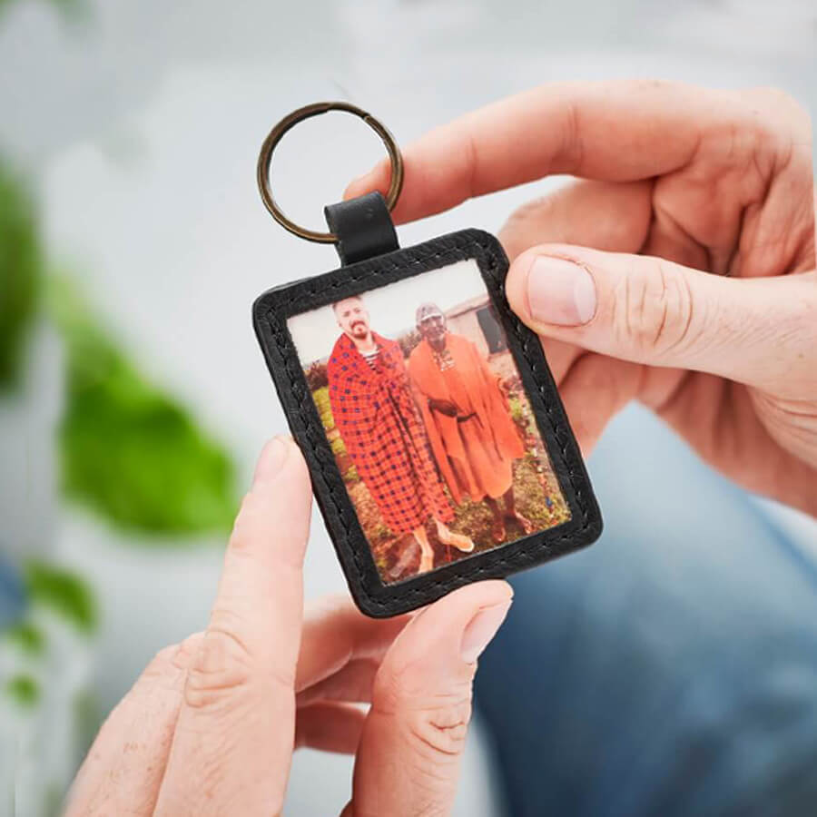 个性化深棕色皮革钥匙圈配金属照片父亲节.jpg