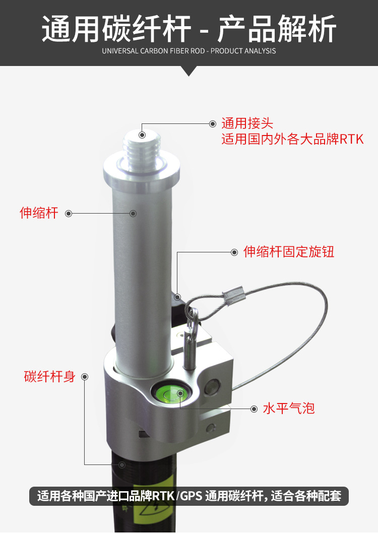 RTK Ci Rod GPS 탄소 섬유 막대 Zhonghai Da Si Tuo Li Hua 측정 원래 범용 측정 막대 손 얇은 브래킷
