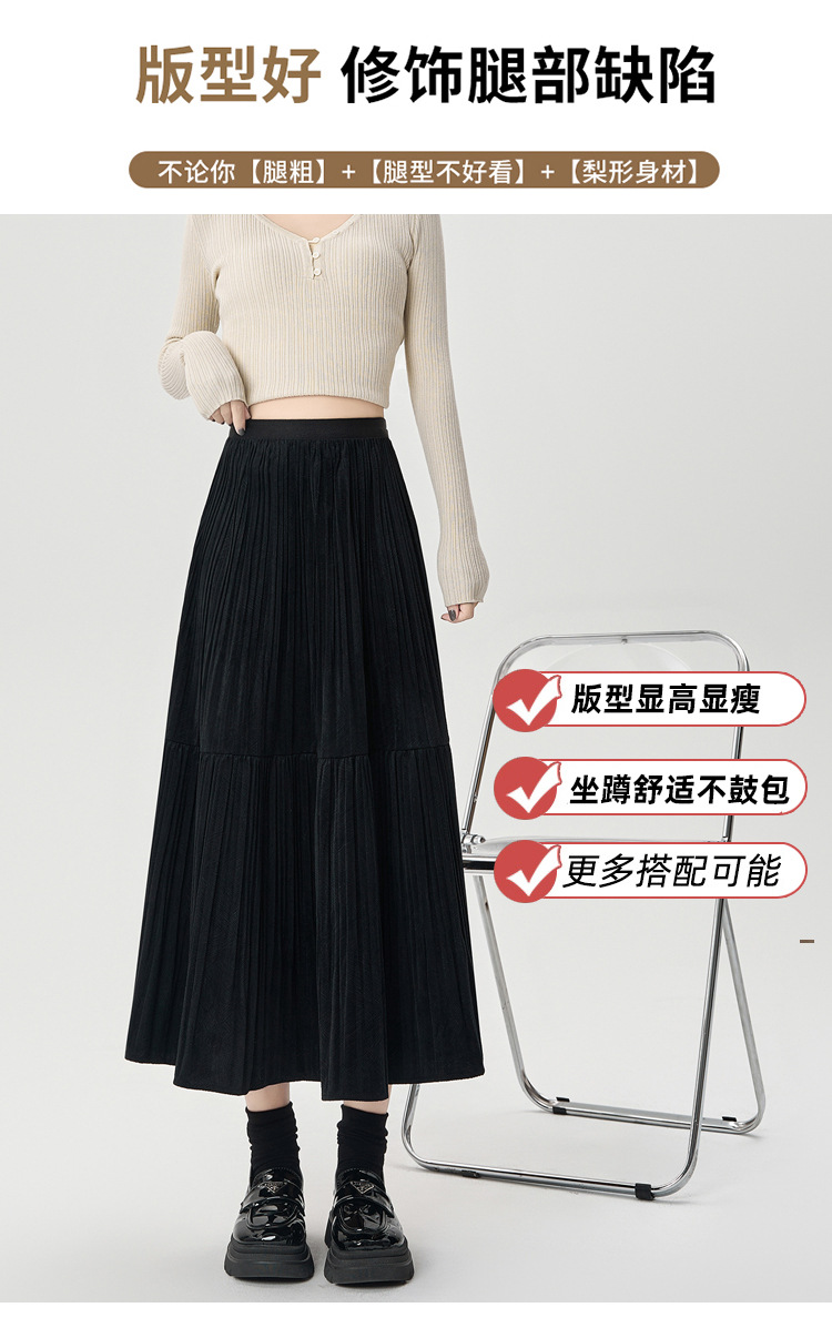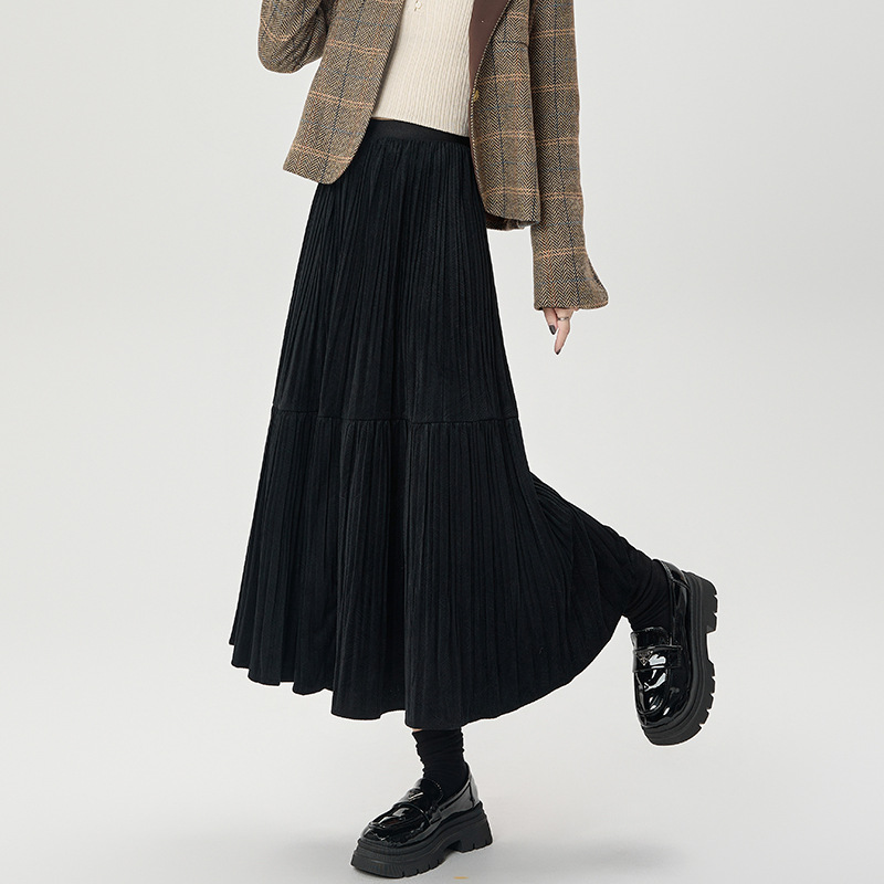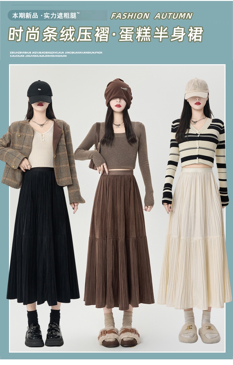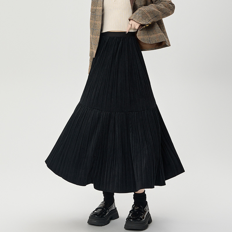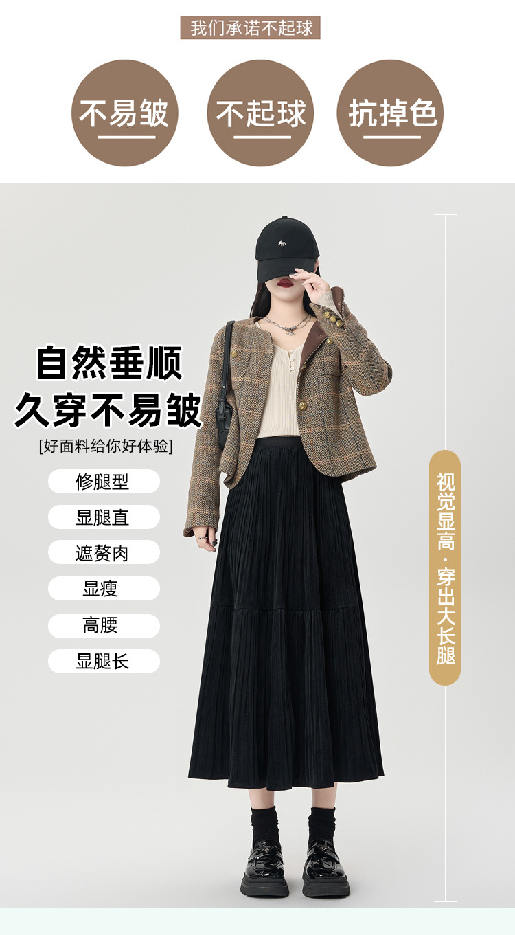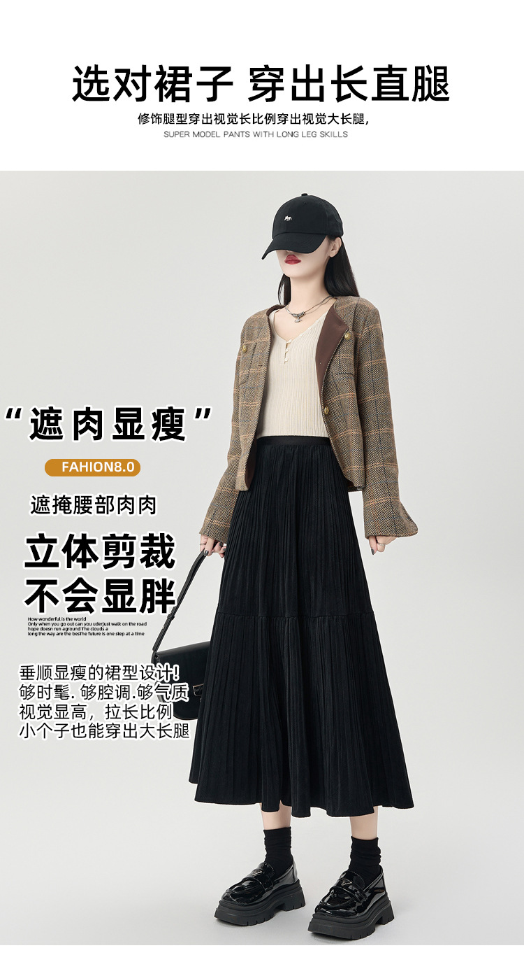 진짜 샷 벨벳 주름 치마 중간 길이의 가을과 겨울 2024 새로운 스타일의 우아한 음영 케이크 스커트 A 자형 주름 치마스토어 가기