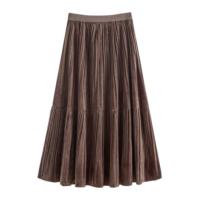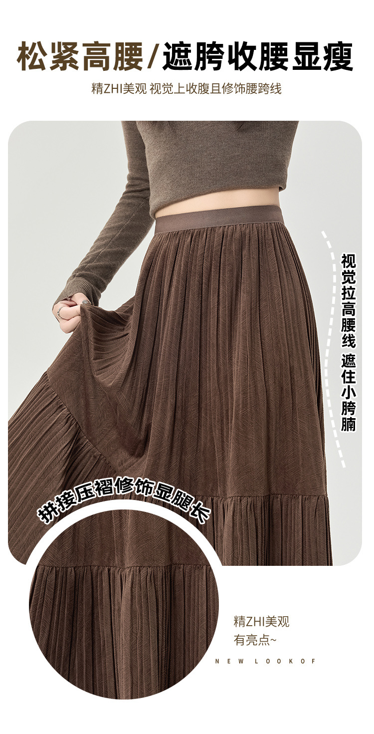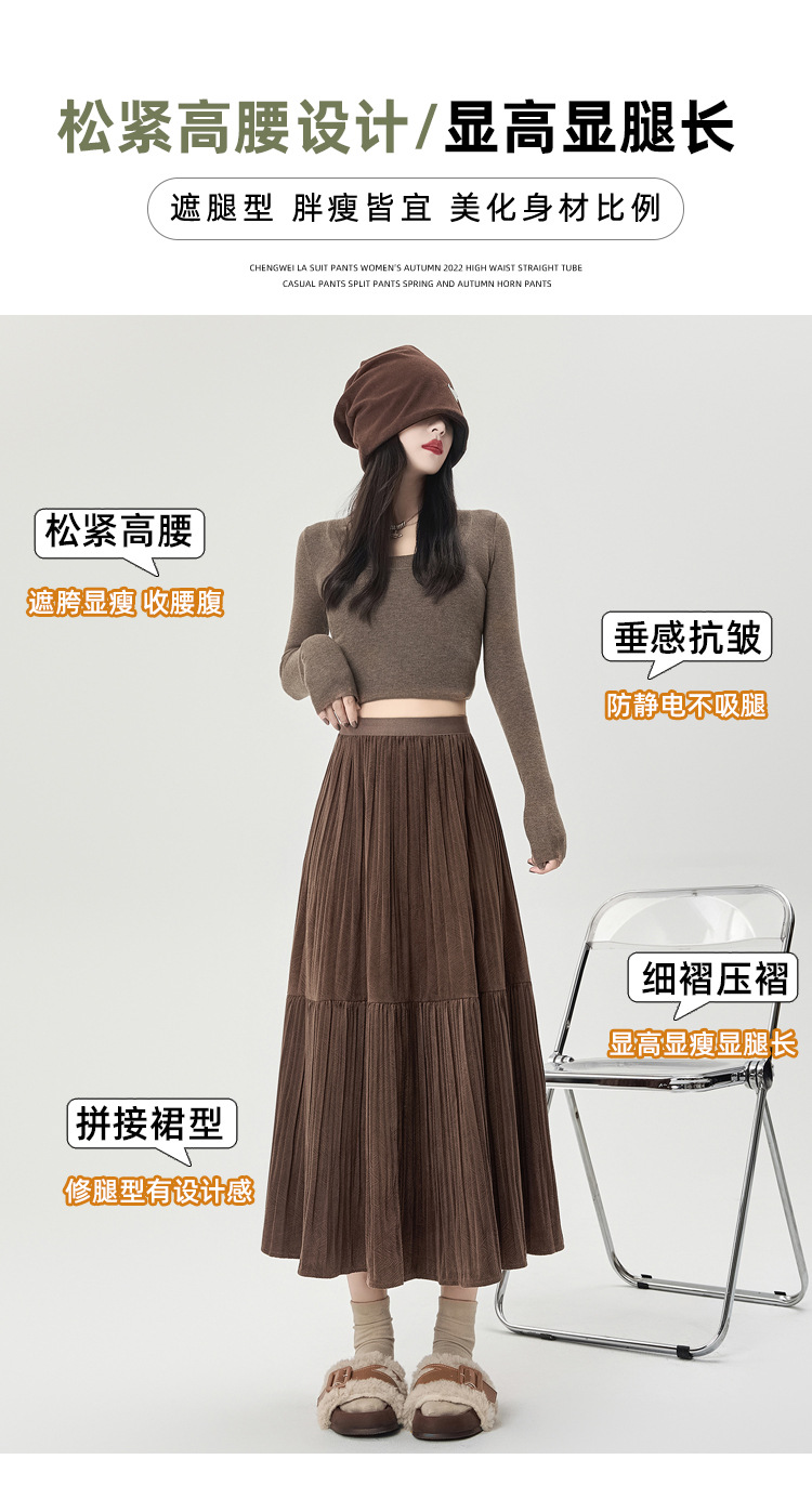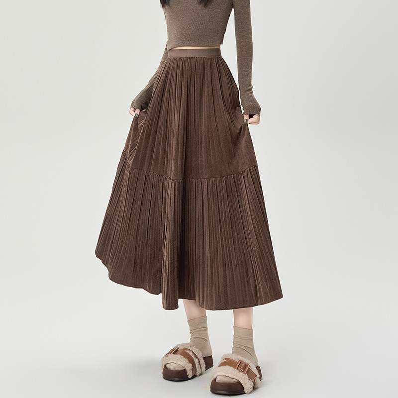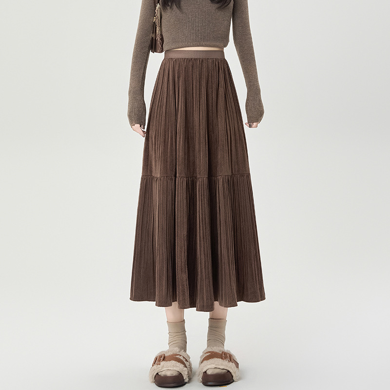 진짜 샷 벨벳 주름 치마 중간 길이의 가을과 겨울 2024 새로운 스타일의 우아한 음영 케이크 스커트 A 자형 주름 치마스토어 가기