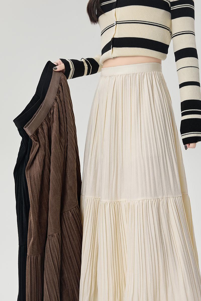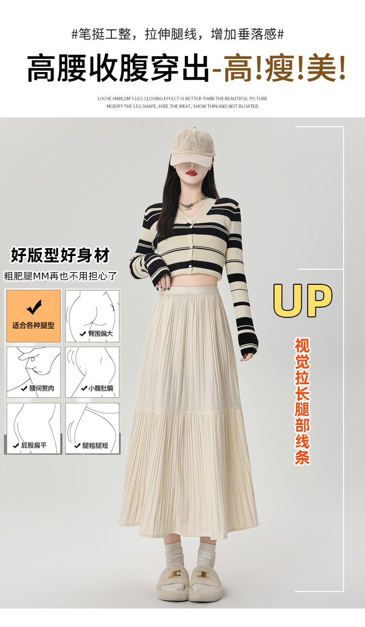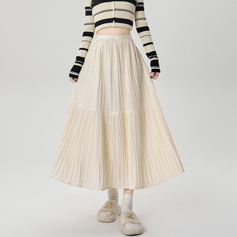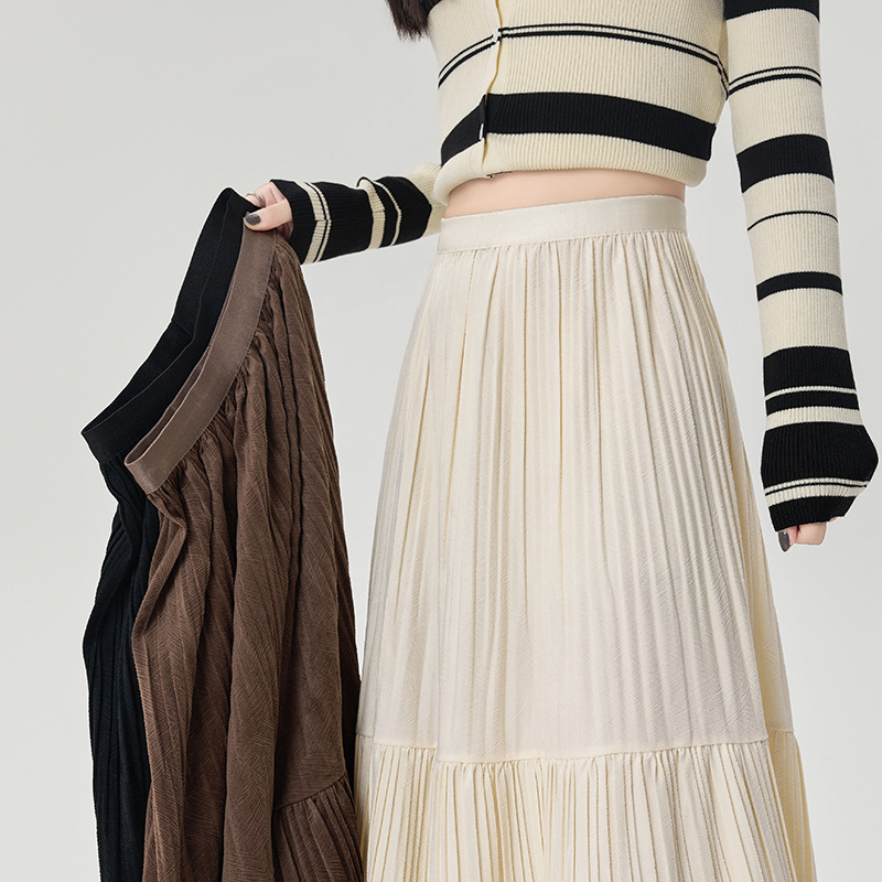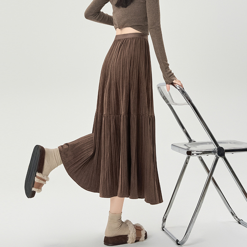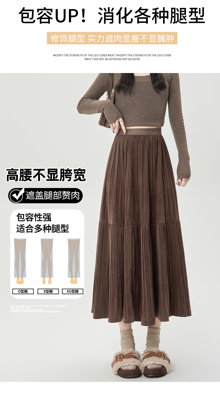 진짜 샷 벨벳 주름 치마 중간 길이의 가을과 겨울 2024 새로운 스타일의 우아한 음영 케이크 스커트 A 자형 주름 치마스토어 가기