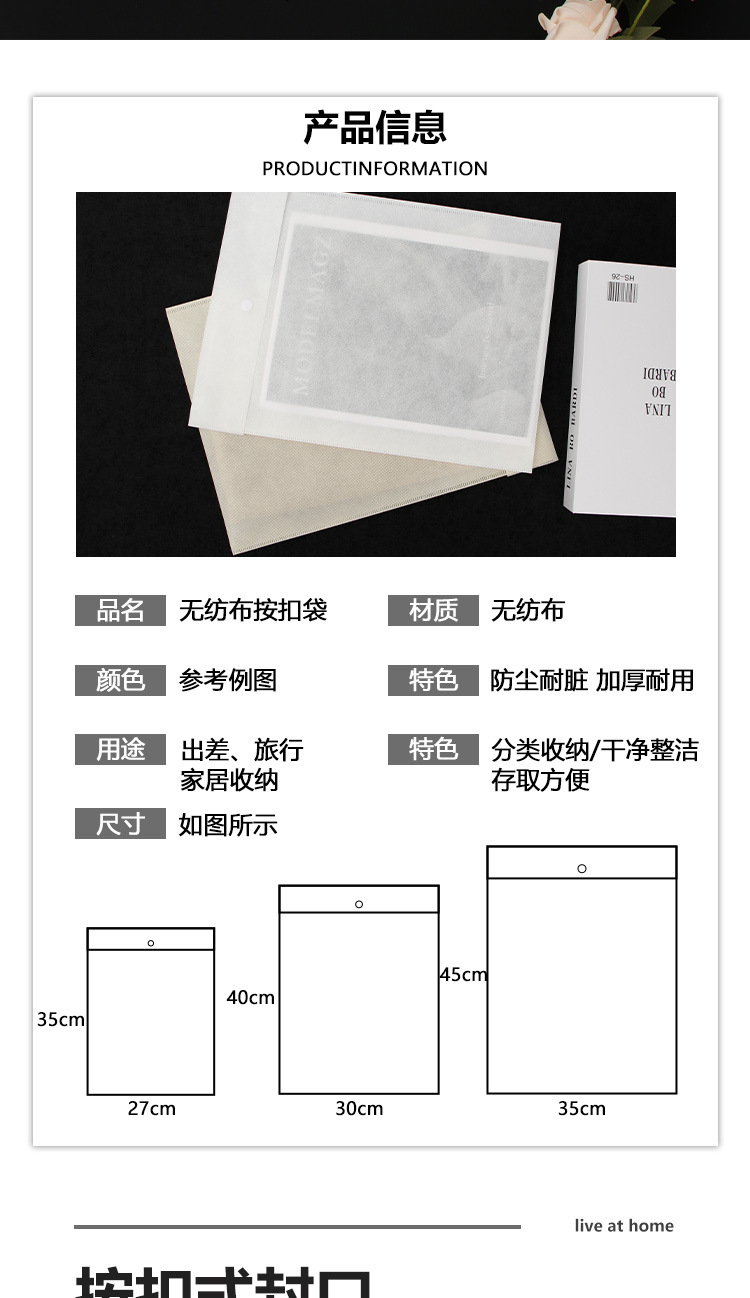 부직포 의류 숨겨진 버클 가방 버클 포장 가방 맞춤형 저장 먼지 가방 반투명 가방 도매스토어 가기