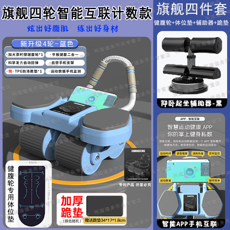 • [럭셔리 4종 세트] 4륜 스마트 복부 휠 + 내하중 601 - 업그레이드된 4륜 초안정 복부 휠 - 24시간 배송