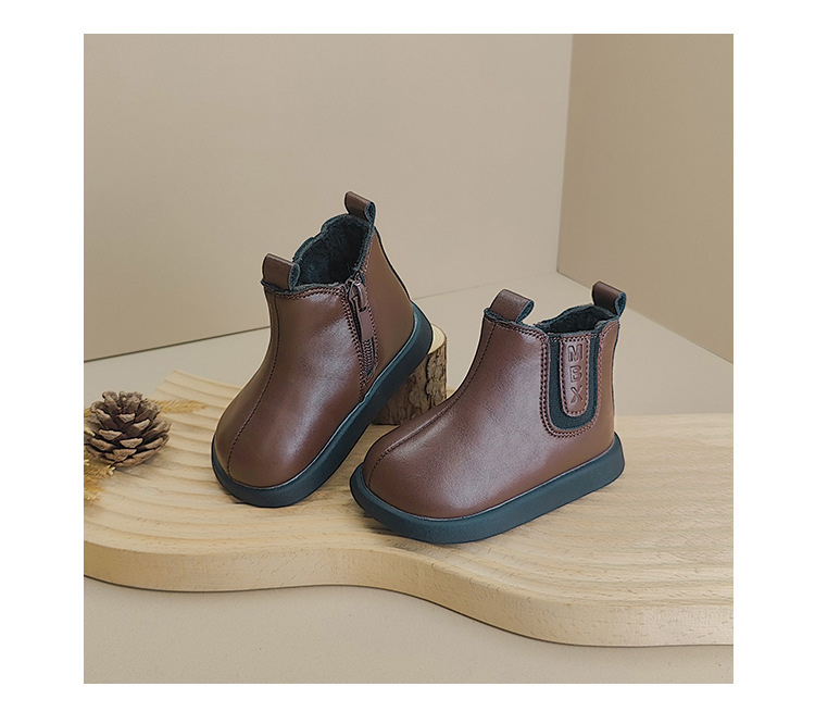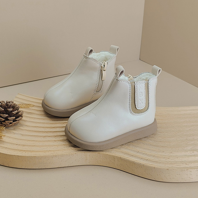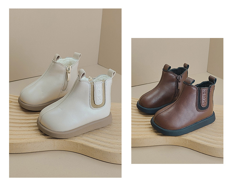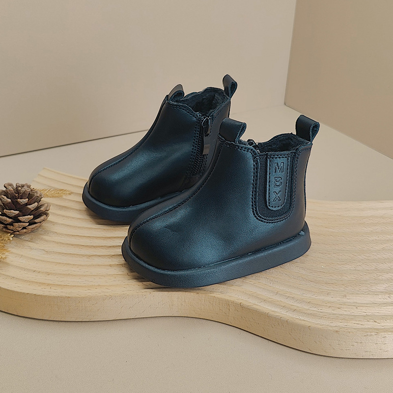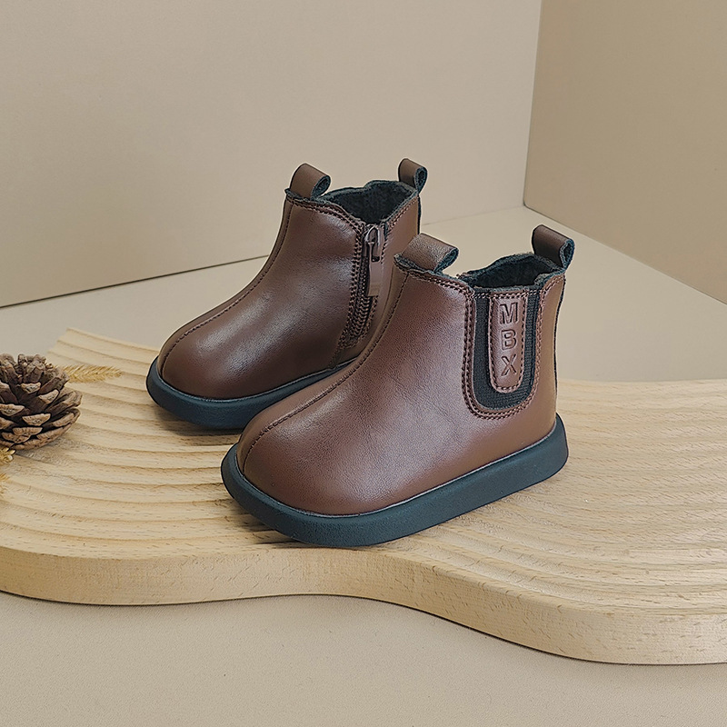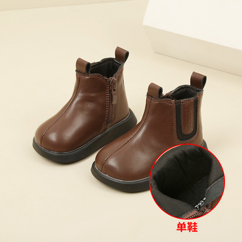 가을과 겨울 새로운 짧은 부츠 아기 신발 기모 소년 신발 패션 한국 부드러운 가죽 부츠 소녀 아기 유아 신발