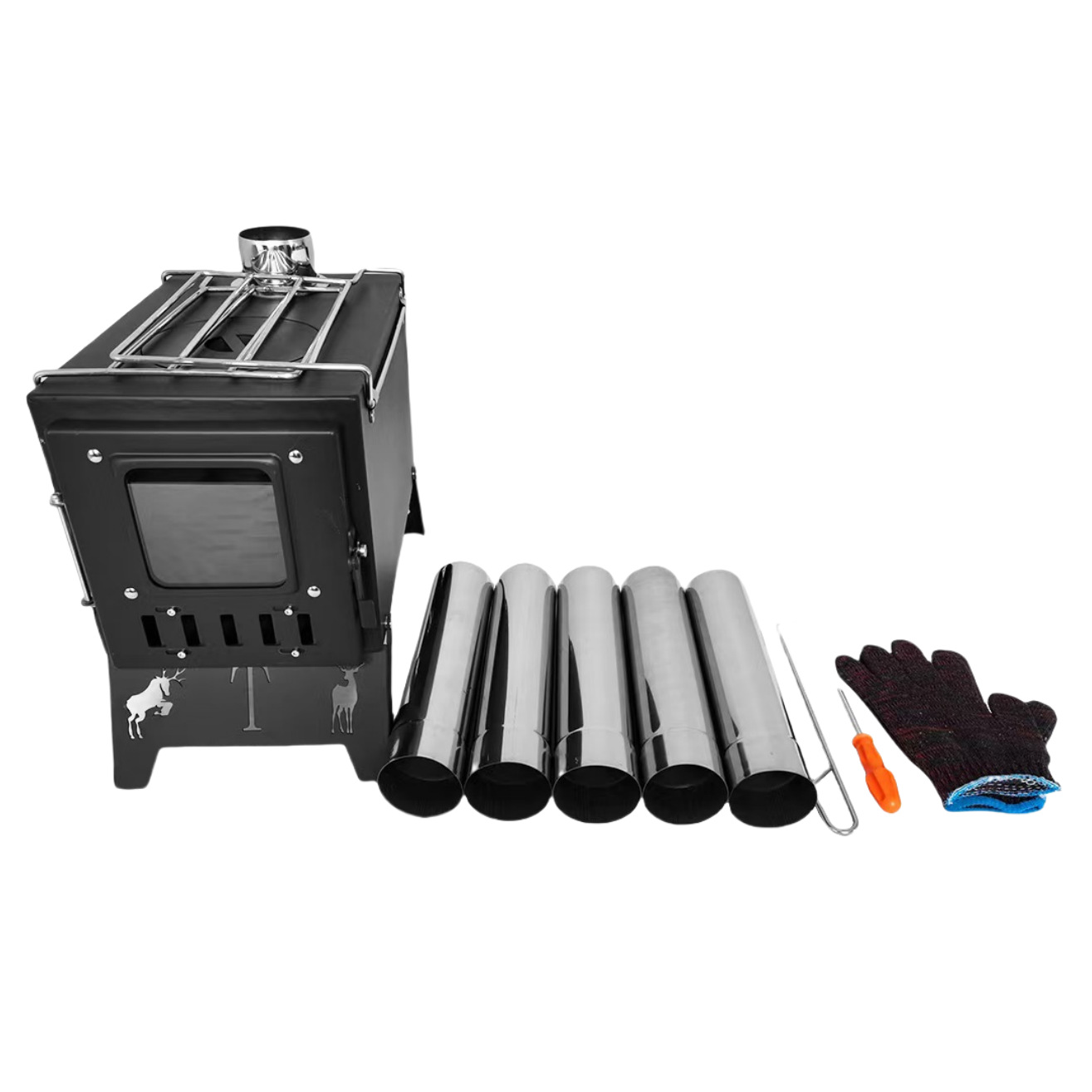 국경 간 관광 야외 캠핑 우드 스토브 휴대용 텐트 조명 난방 스토브 피크닉 접이식 스테인레스 스틸 카드 스토브
