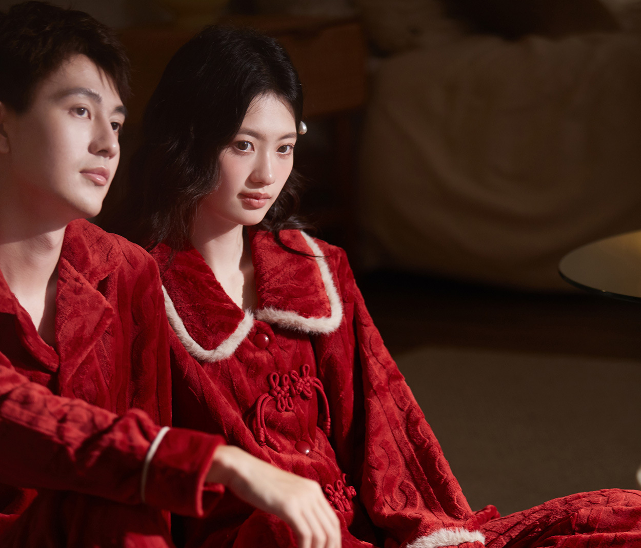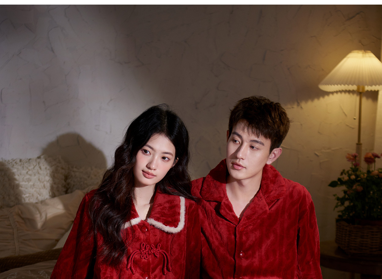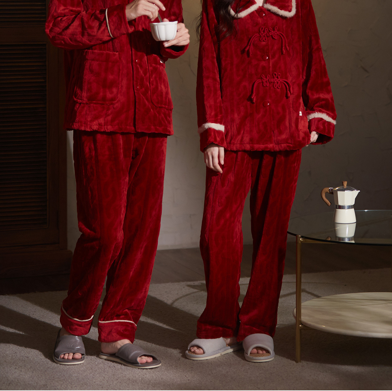 커플 잠옷 여성의 가을과 겨울 국가 스타일 레드 웨딩 산호 양털 홈 의류 남성 세트스토어 가기