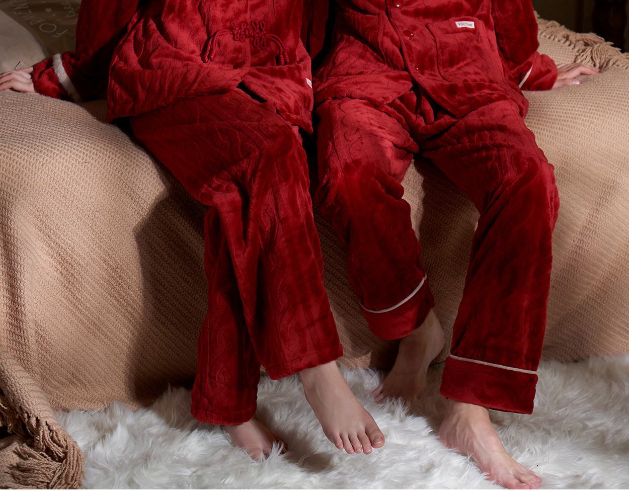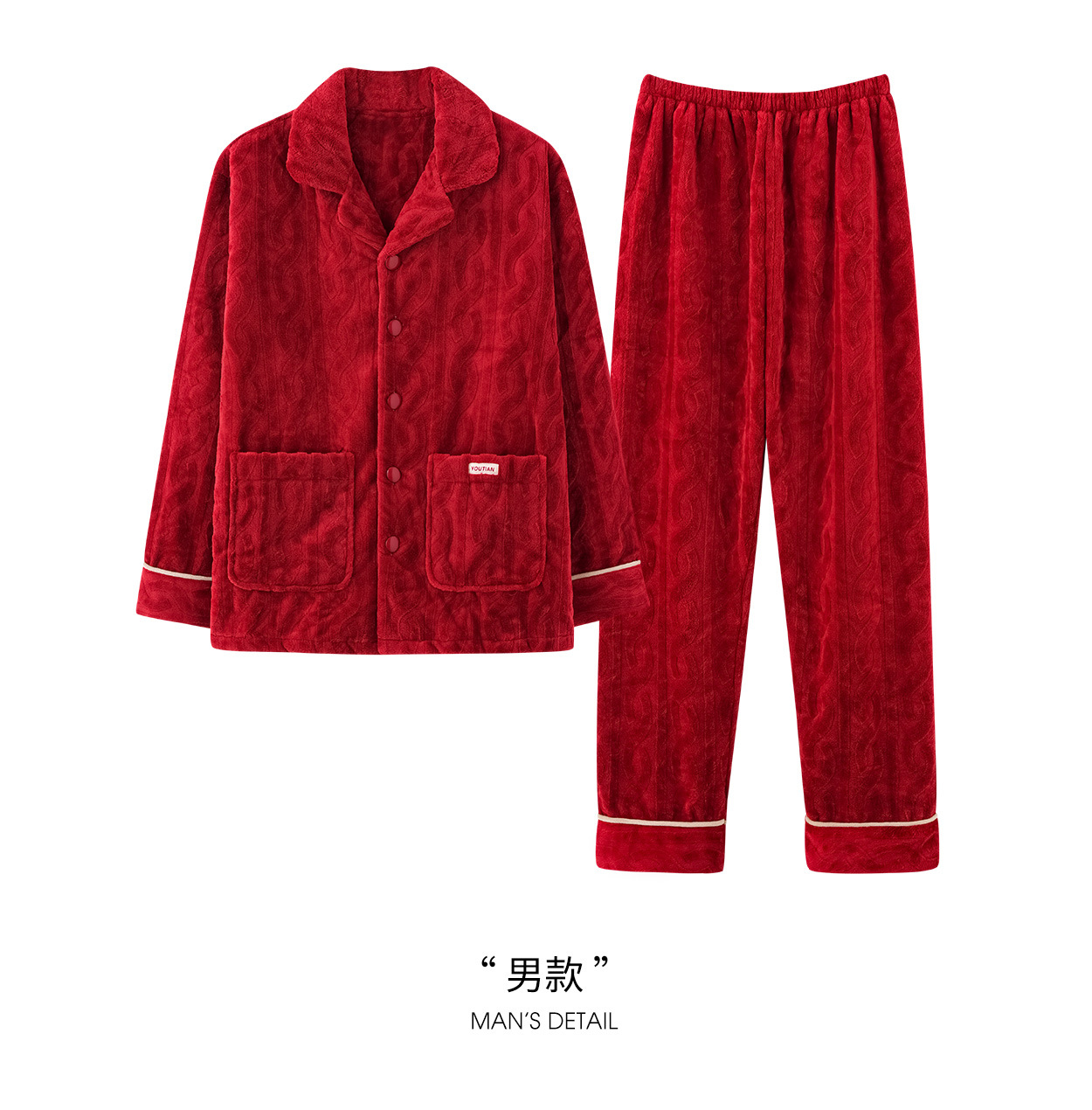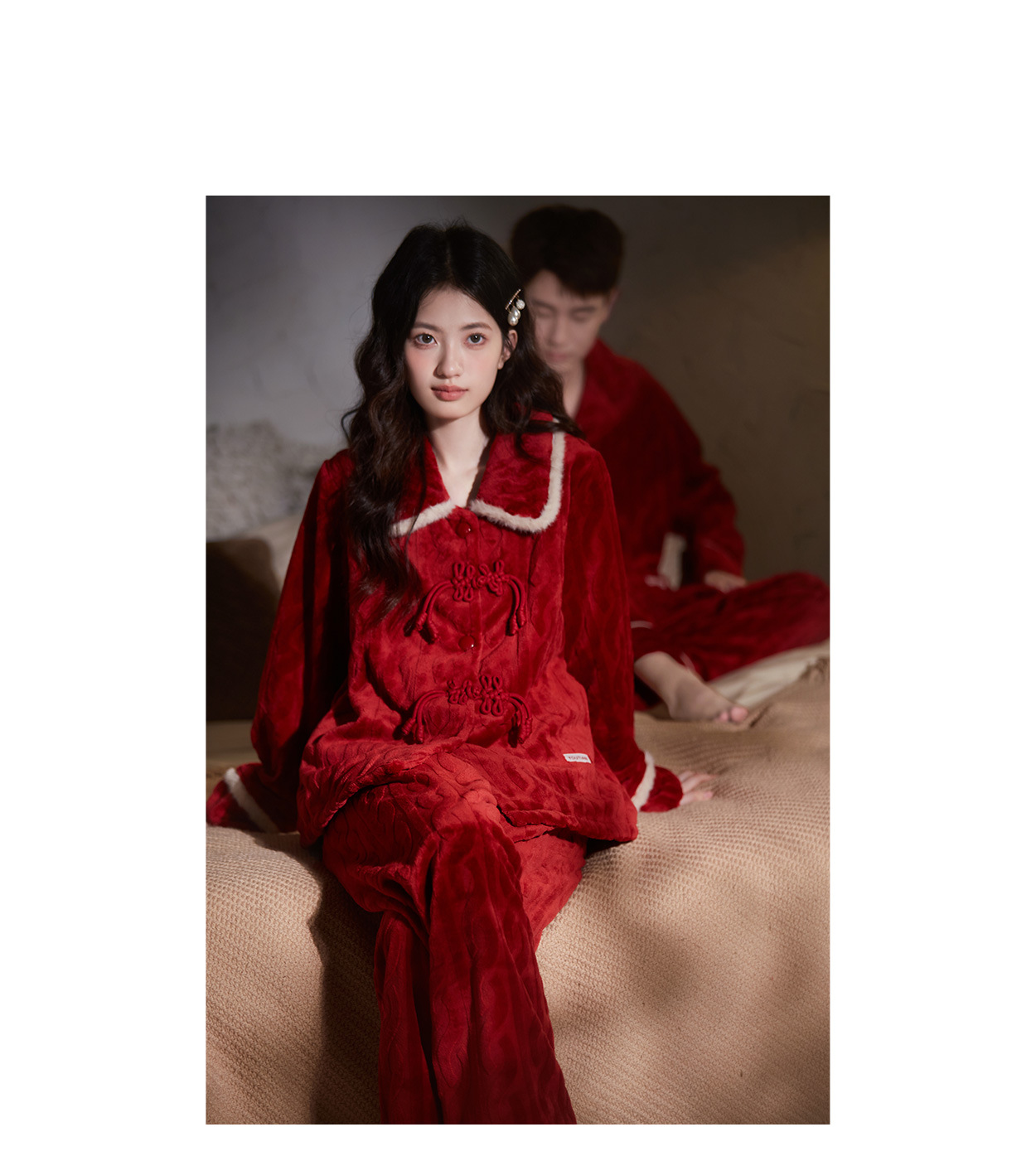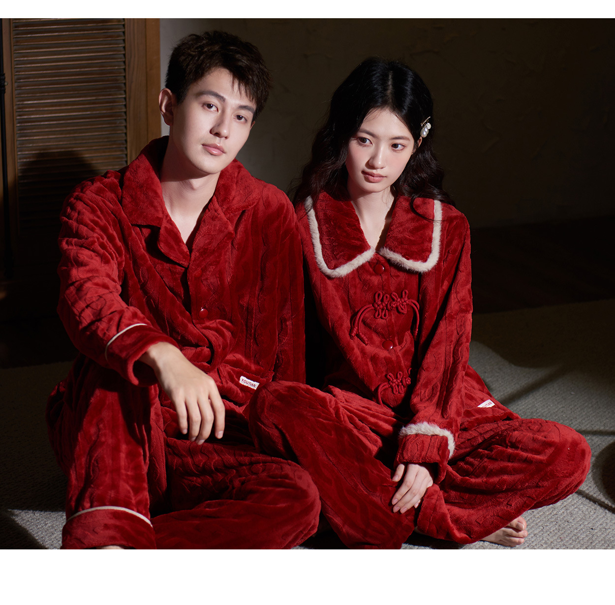 커플 잠옷 여성의 가을과 겨울 국가 스타일 레드 웨딩 산호 양털 홈 의류 남성 세트